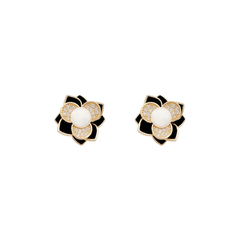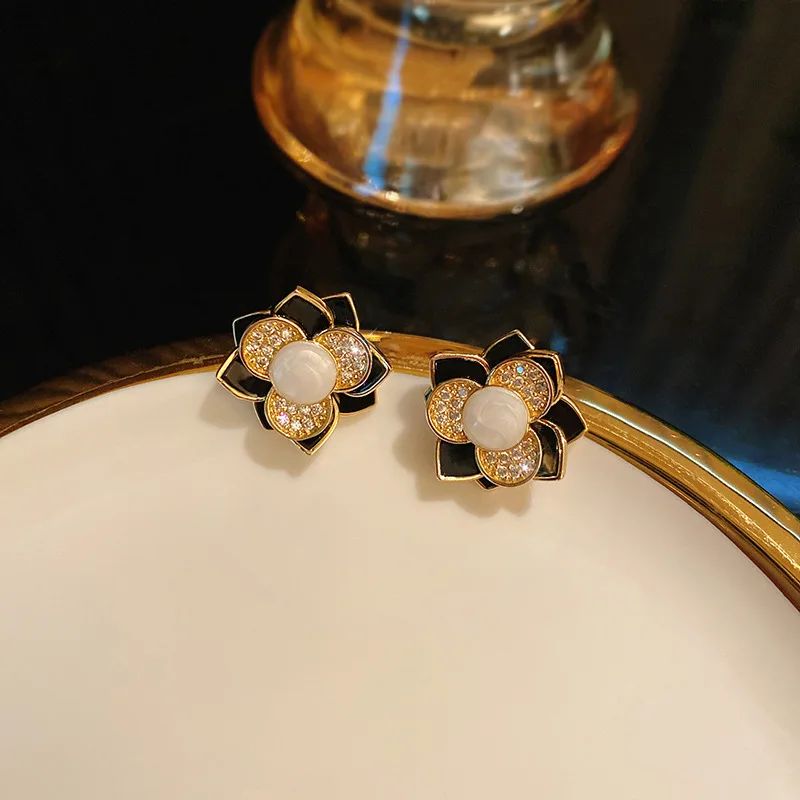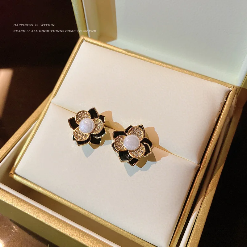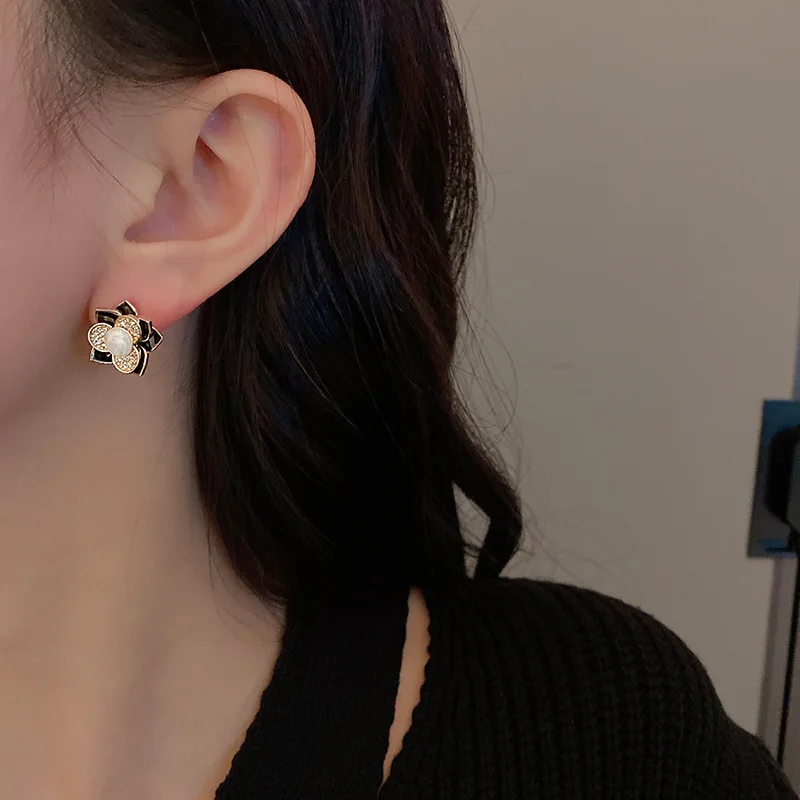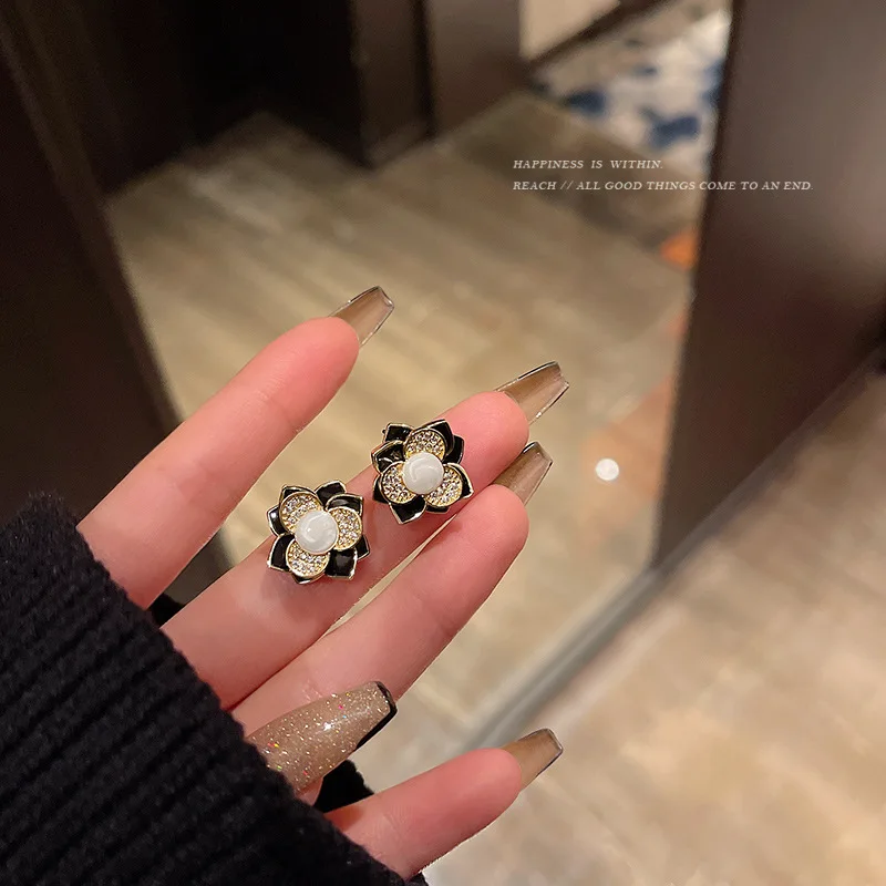 Elegant Ladies Classic Black Camellia Women's Earrings New Fashion Luxury Jewelry Wedding Party Girl Sexy Earrings
