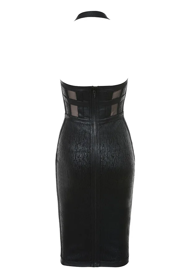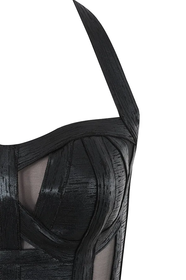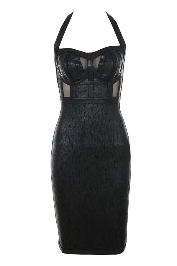Elegant ladies low chest sleeveless bandage dress sexy graceful beauty bodycon black evening party dress