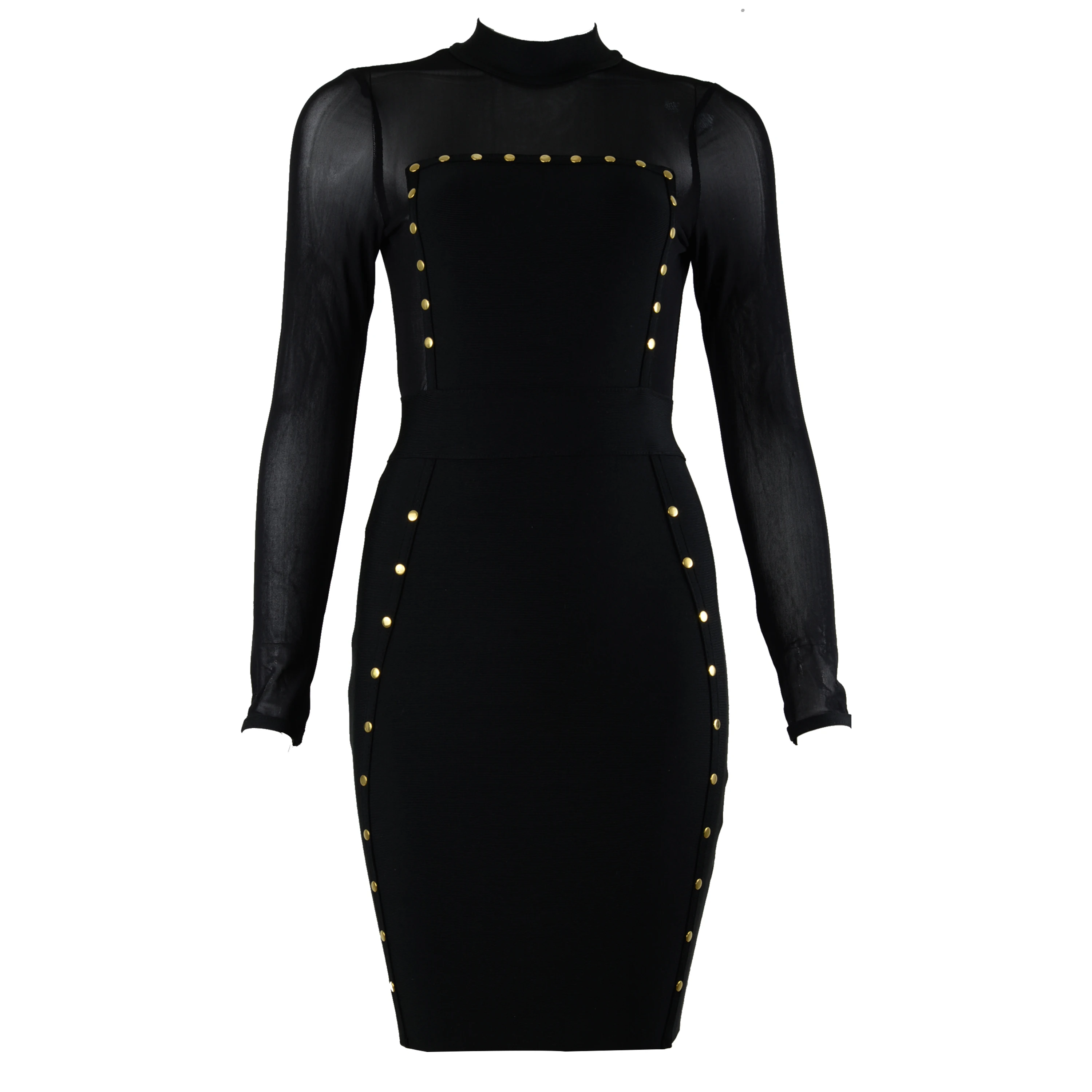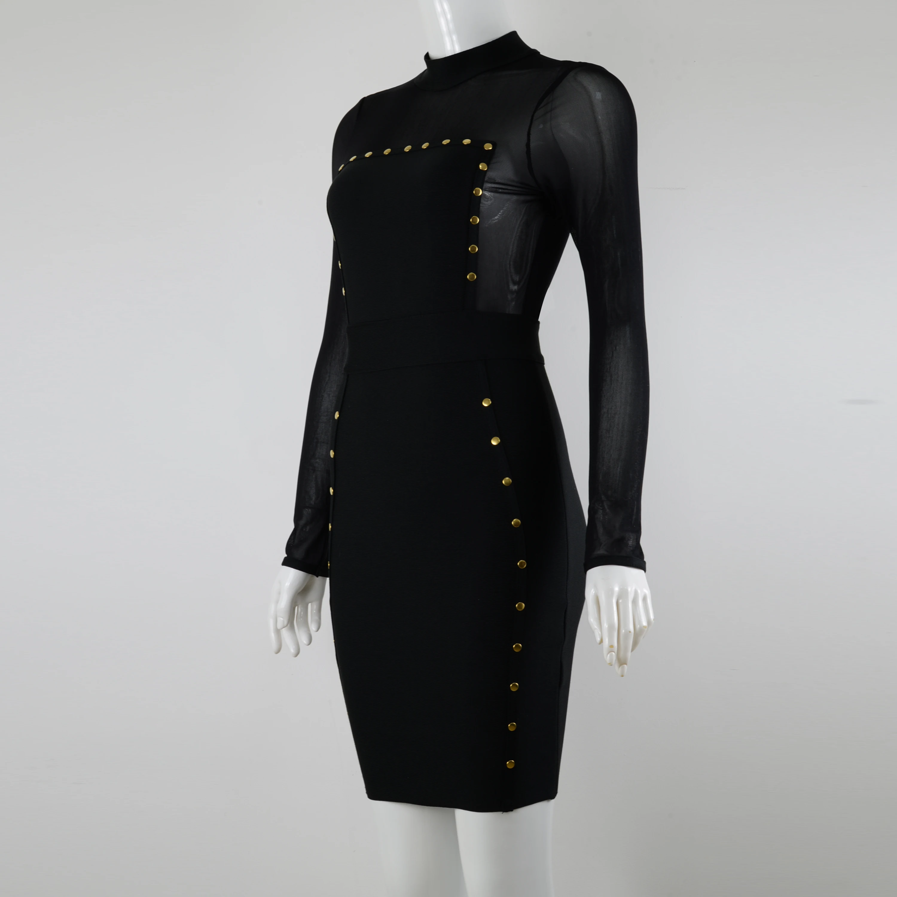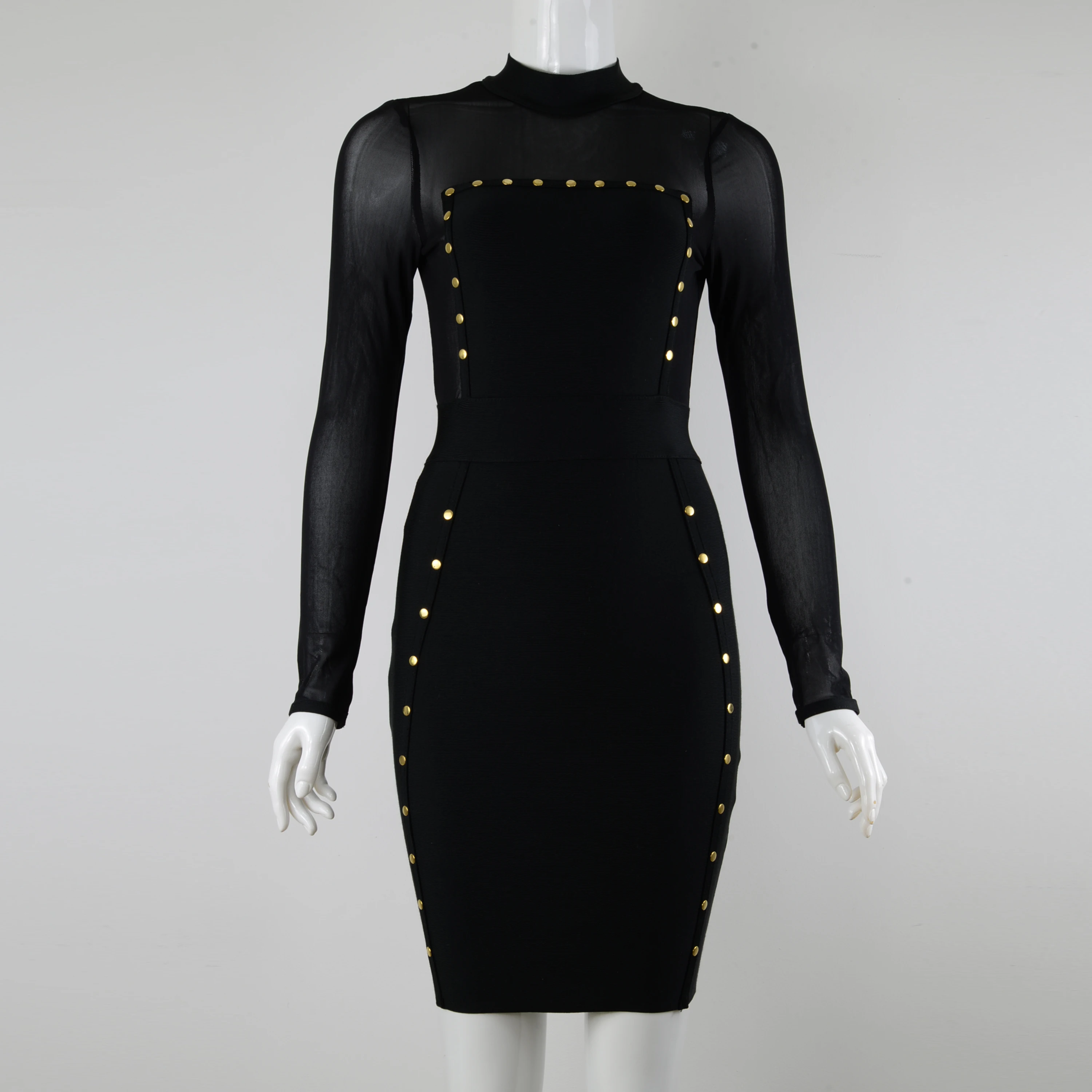 Elegant lady long sleeve bodycon bandage dress round neck sexy evening party casual dresses factory wholesale