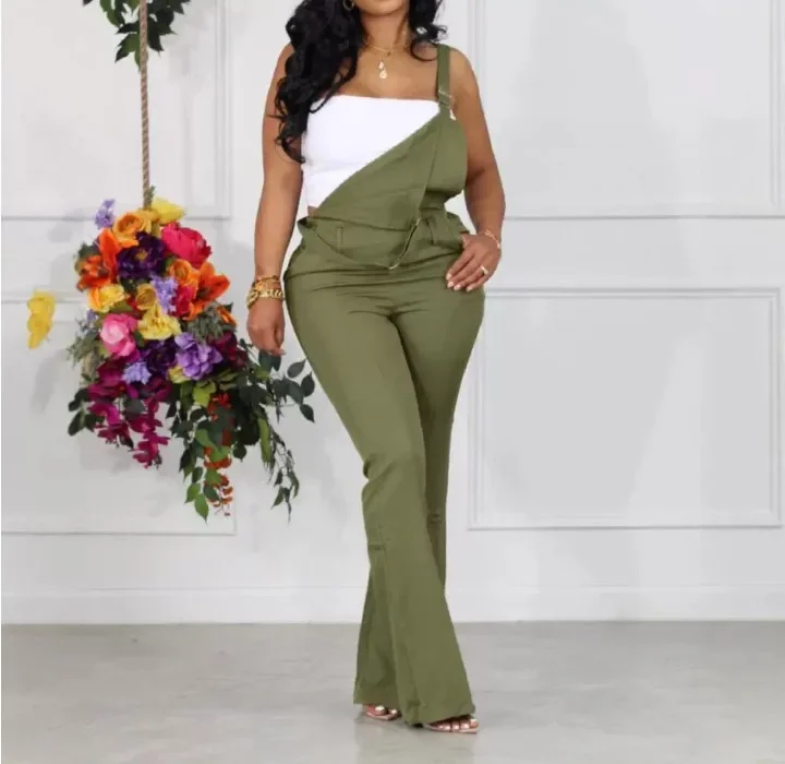 Elegant Long Jumpsuit Woman Streetwear Fashion 2024 Summer New Fashion Casual Pocket Design Slit Suspender Sexy Bodysuit Pants