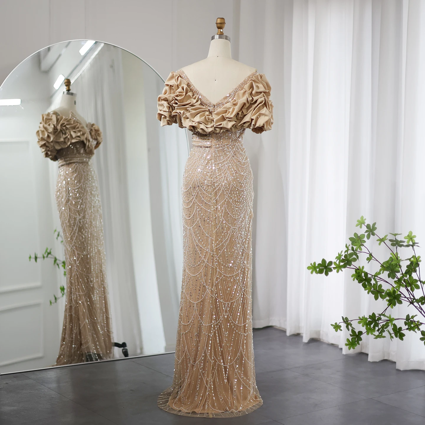 Elegant Off Shoulder Mermaid Sage Green Evening Dresses Luxury Dubai Women Arabic Champagne Wedding Party Gown Sz288