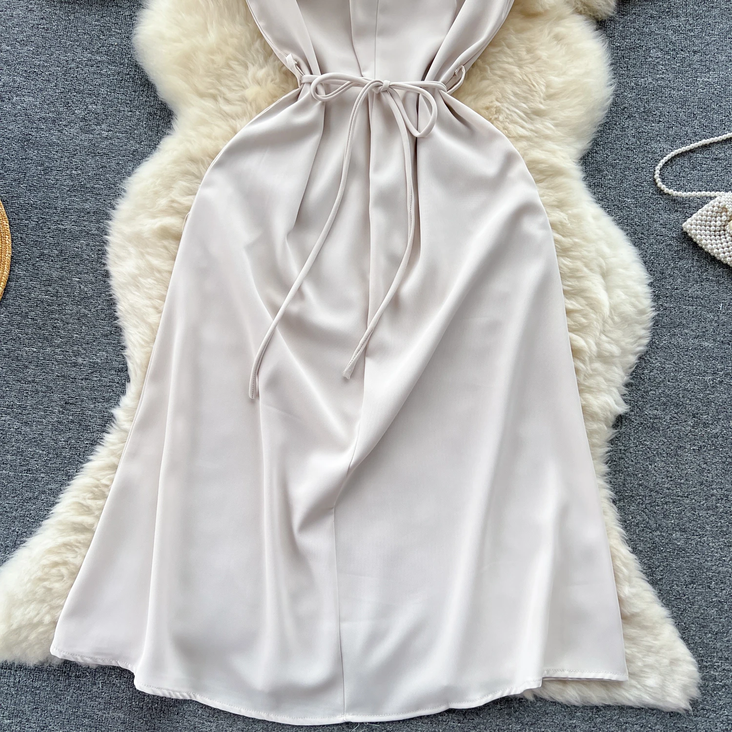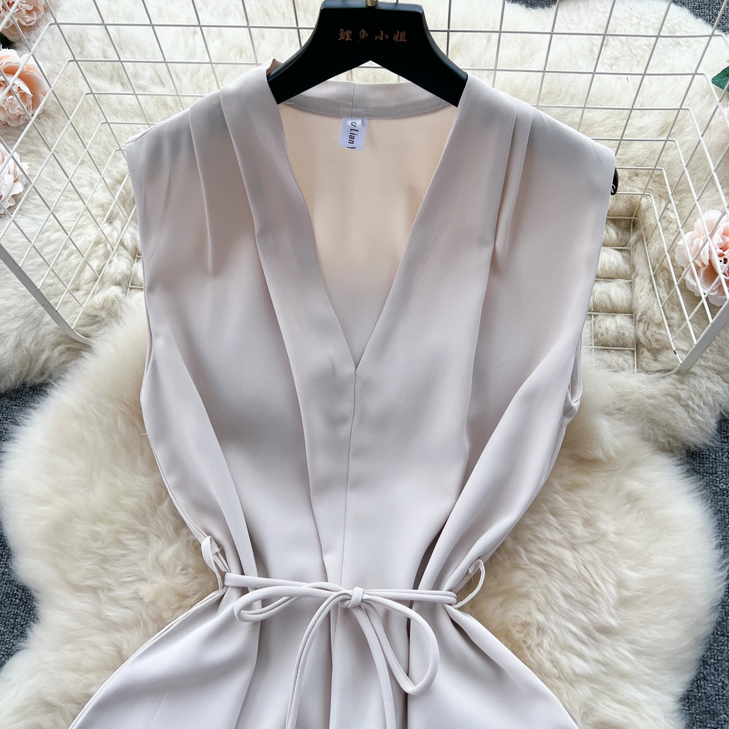 Elegant Sleeveless V-neck dress for women's summer slimming temperament and fashionable casual long skirt vestidos de fiesta lar