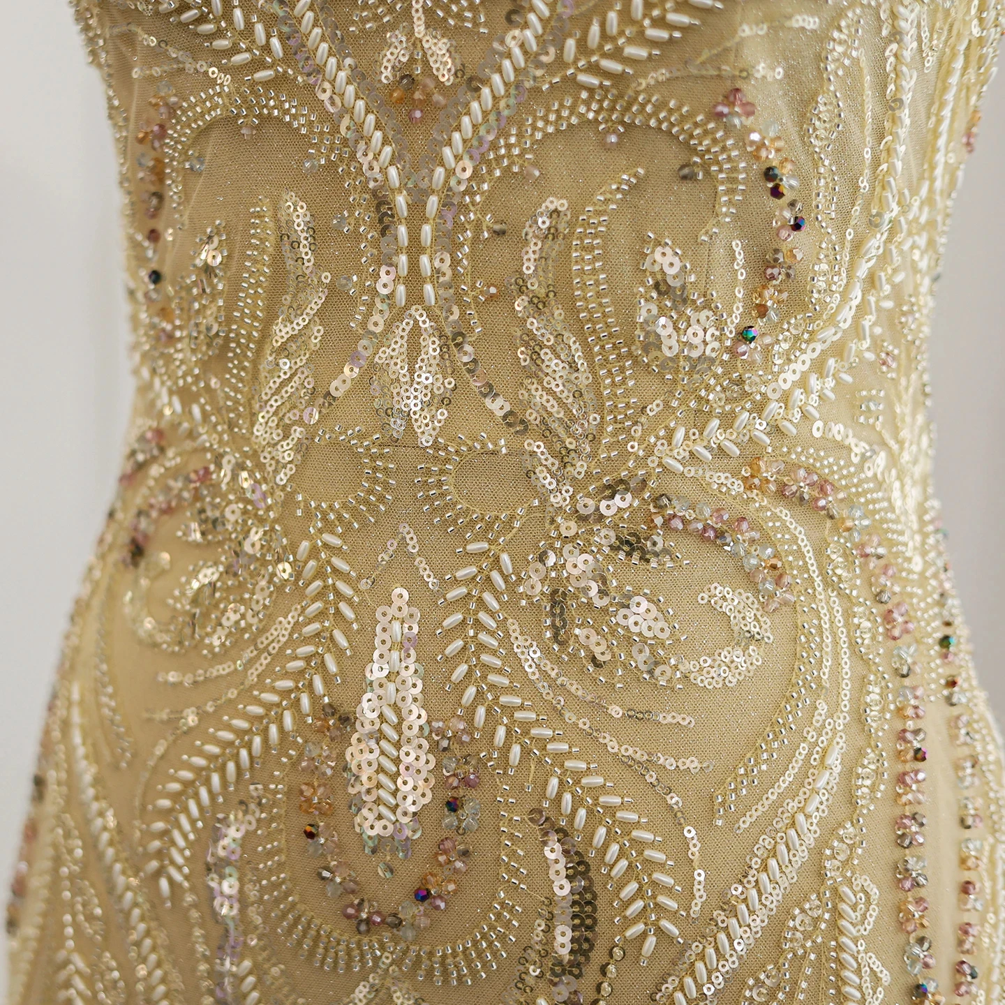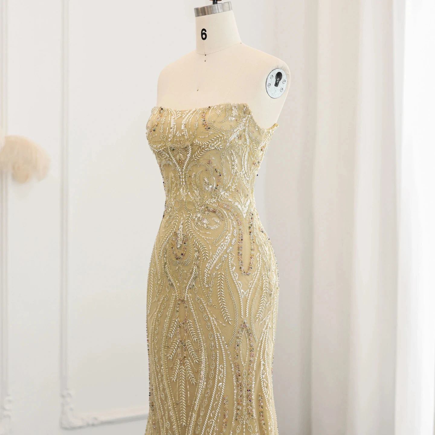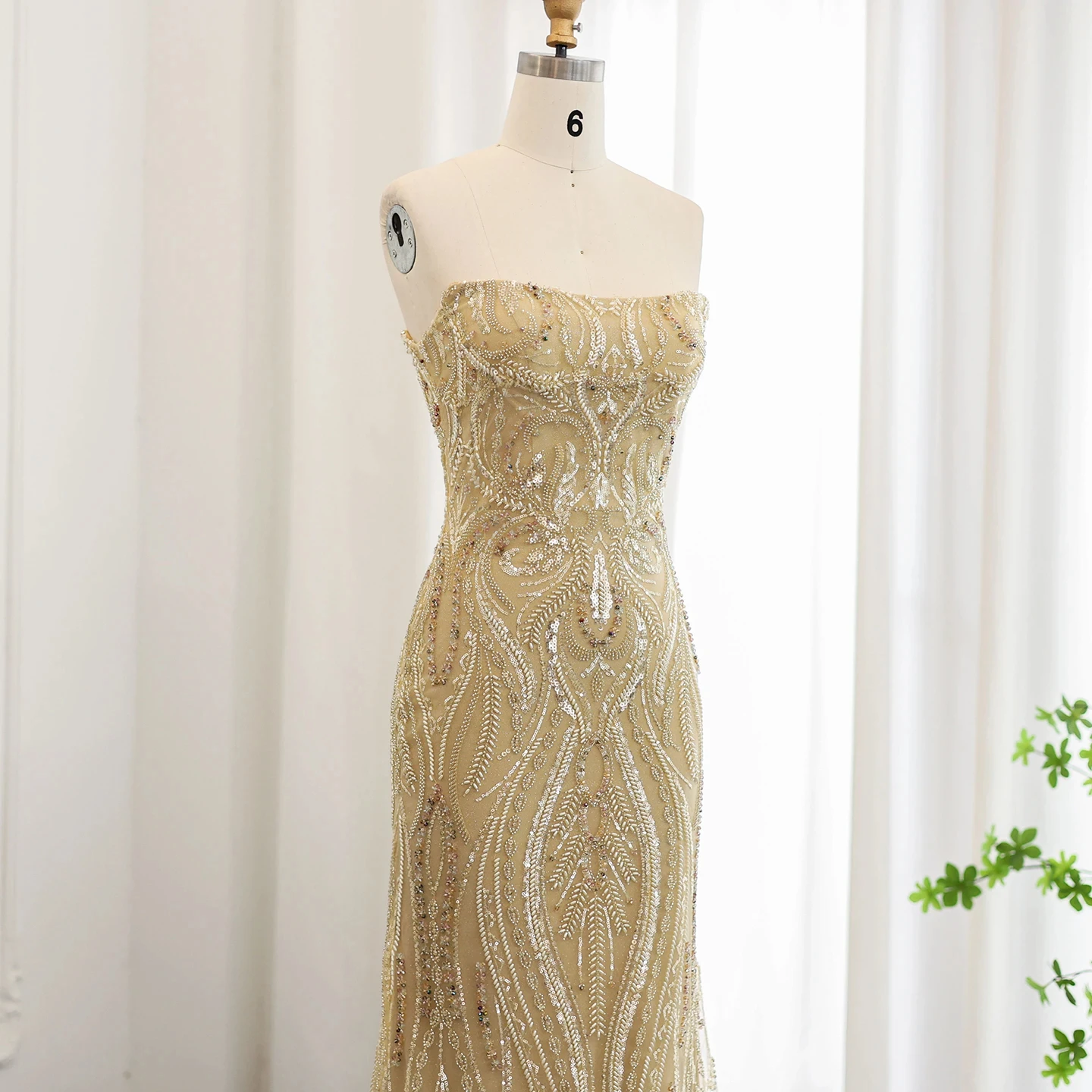 Elegant Strapless Mermaid Gold Beaded Evening Dress for Women Wedding Formal Party Gowns SZ176