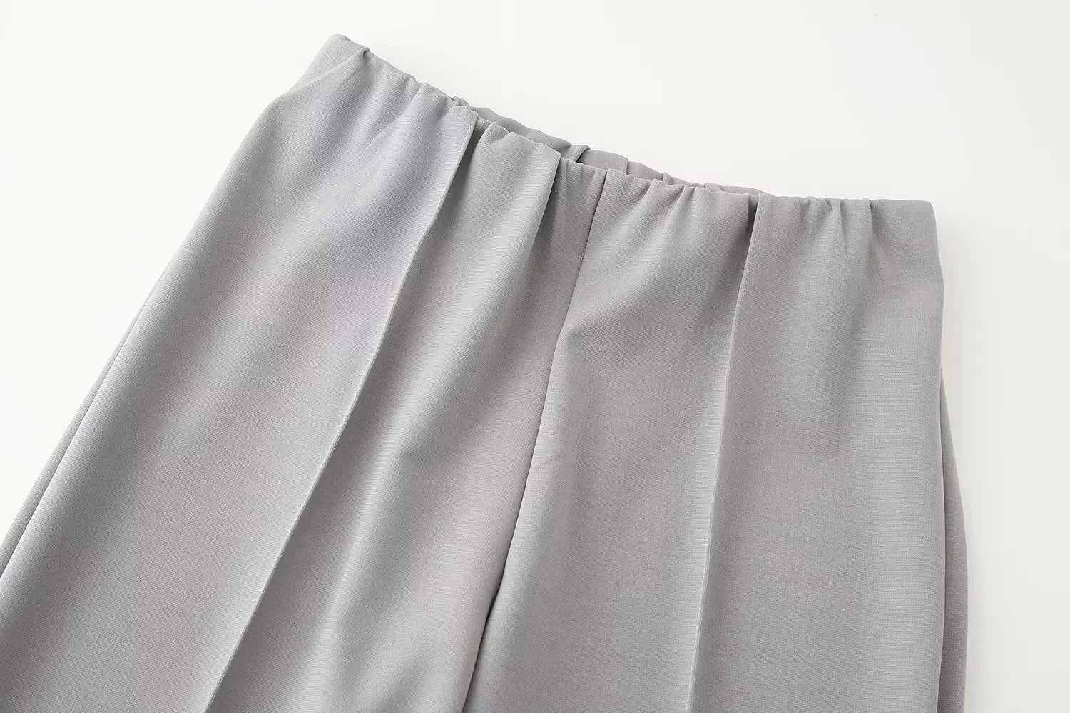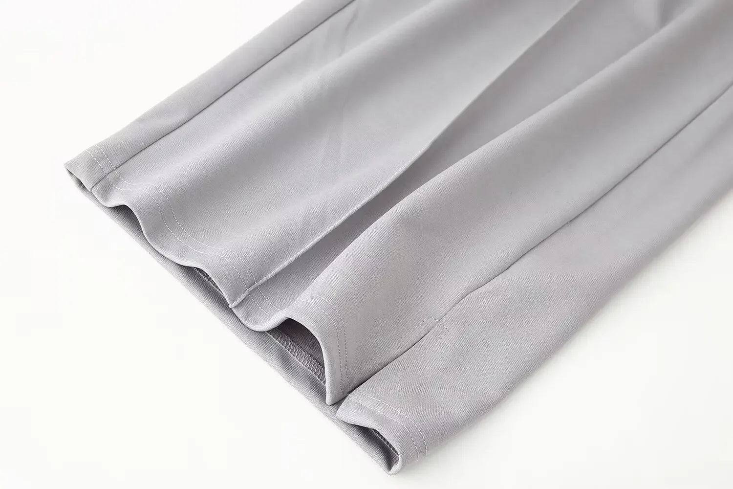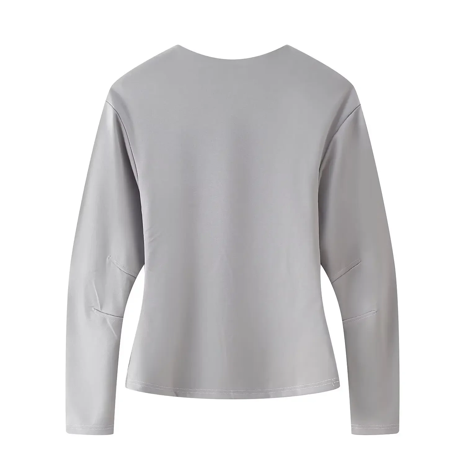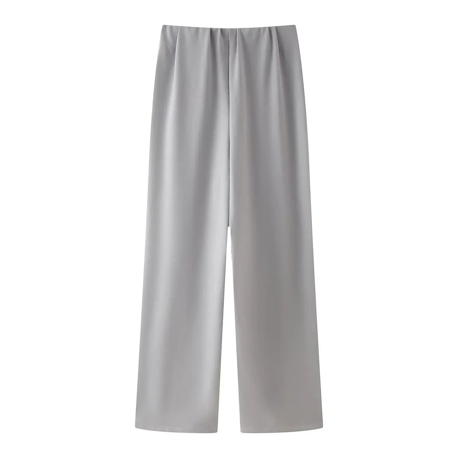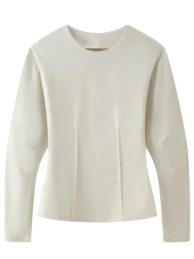 Elegant Women Casual Solid Pants Suits Round Neck Full Sleeve Shirt Wise Leg Straight Pant Suit Lady New Basic 2 Pieces Set 2025