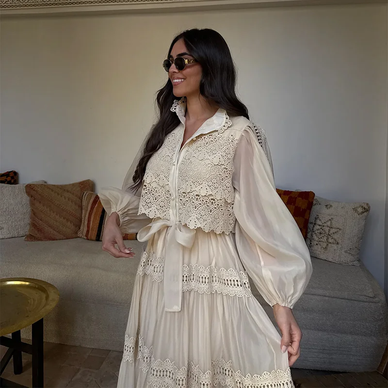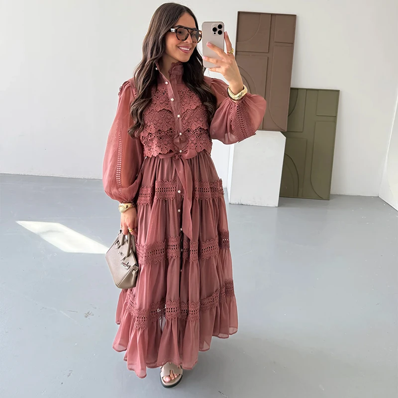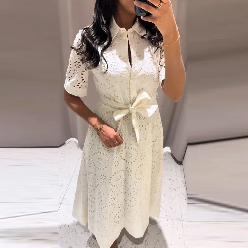Model Number: Elegant Embroidered Lapel Hollow Dress