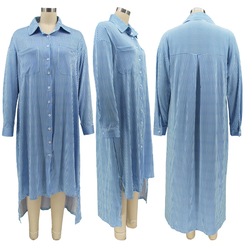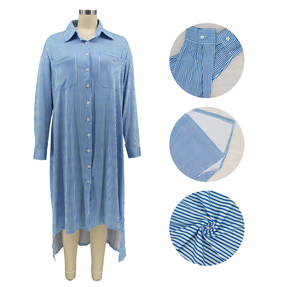 Spring Autumn Long Sleeve Long Shirt Dress Fashionable Oversize Striped Dress Ladies Casual Dresses