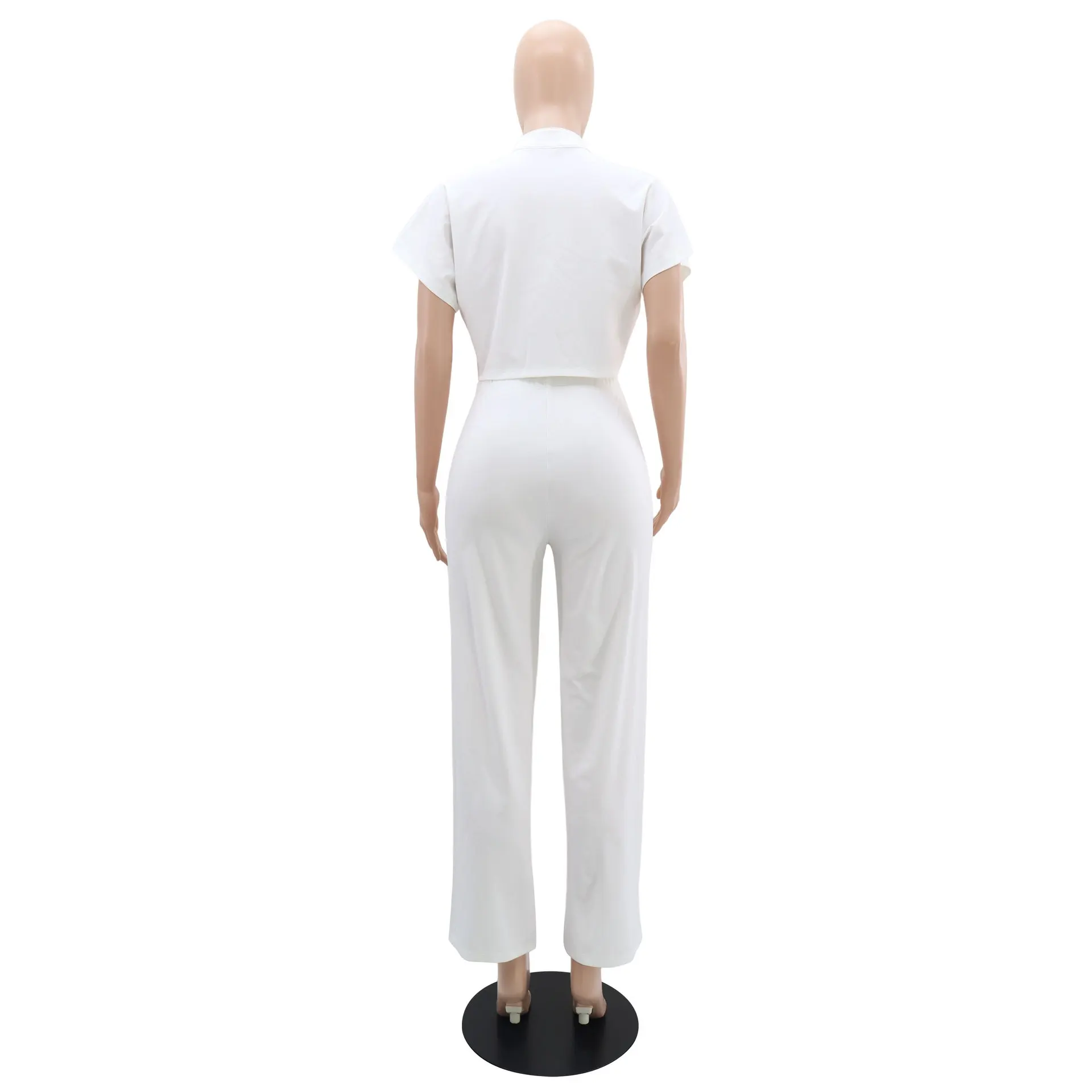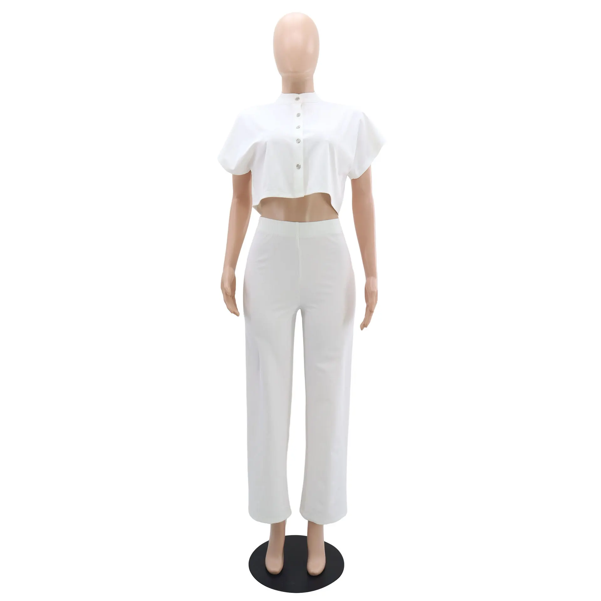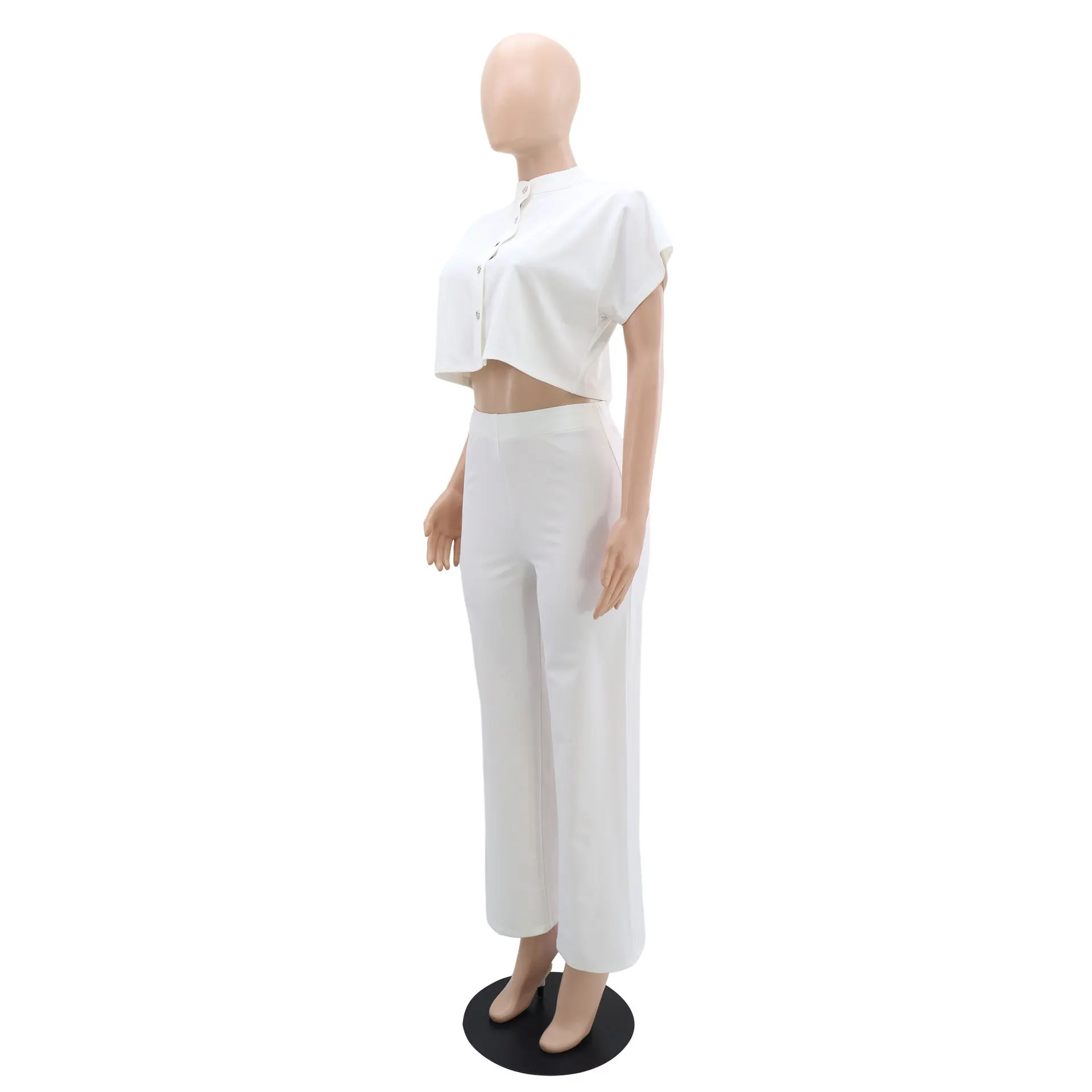 Europe And The United States Cardigan Top Solid Color Straight Women'S Pants Casual Two-Piece Set