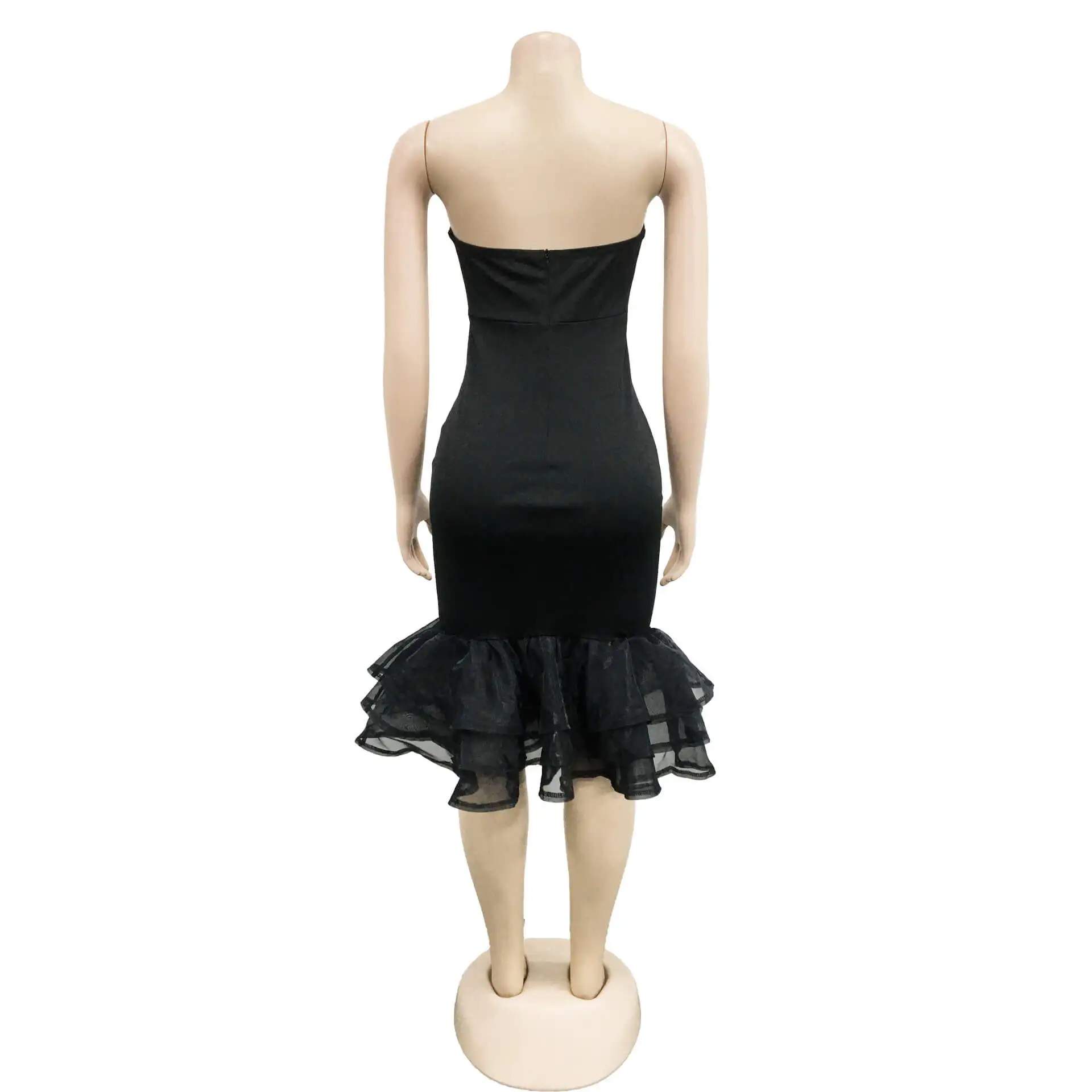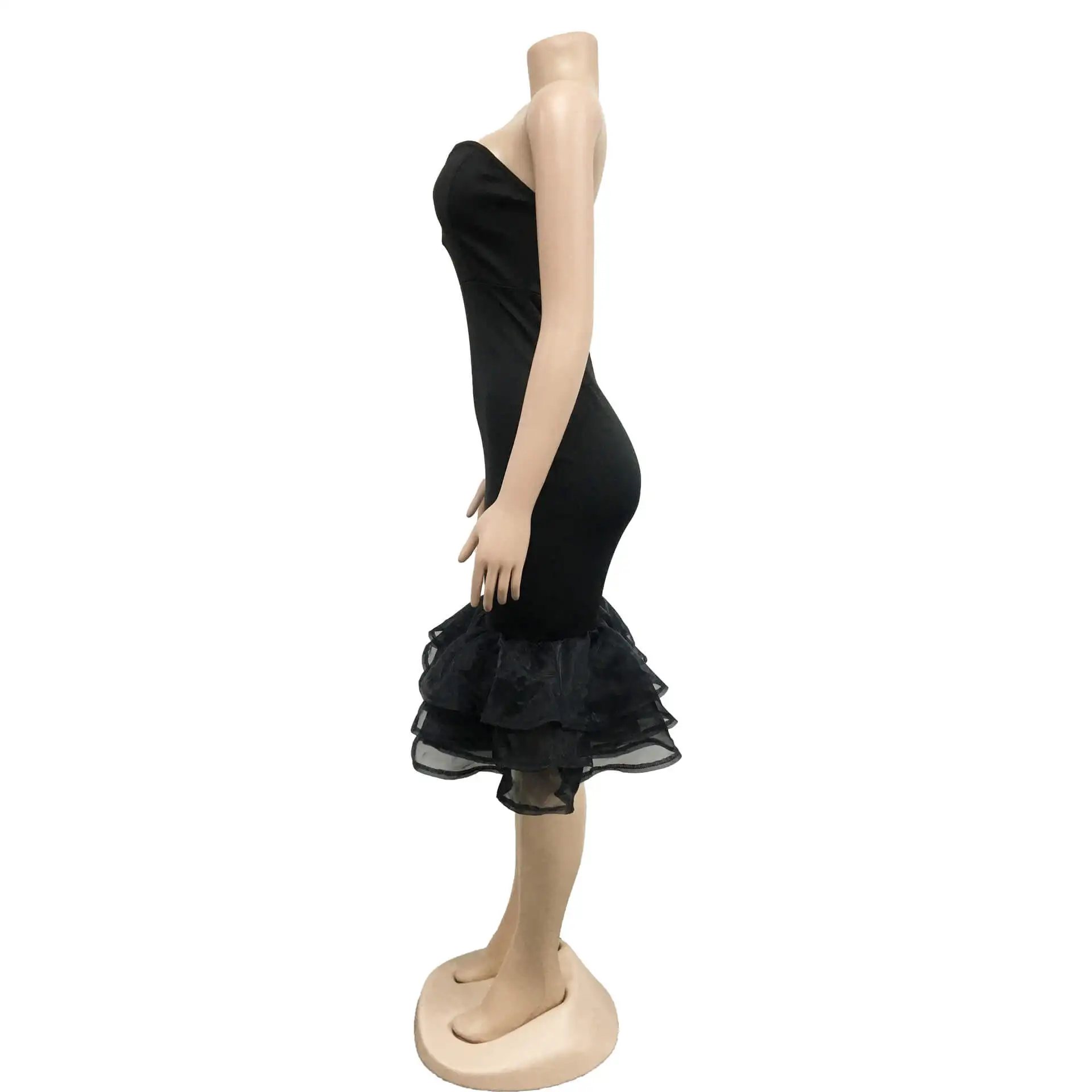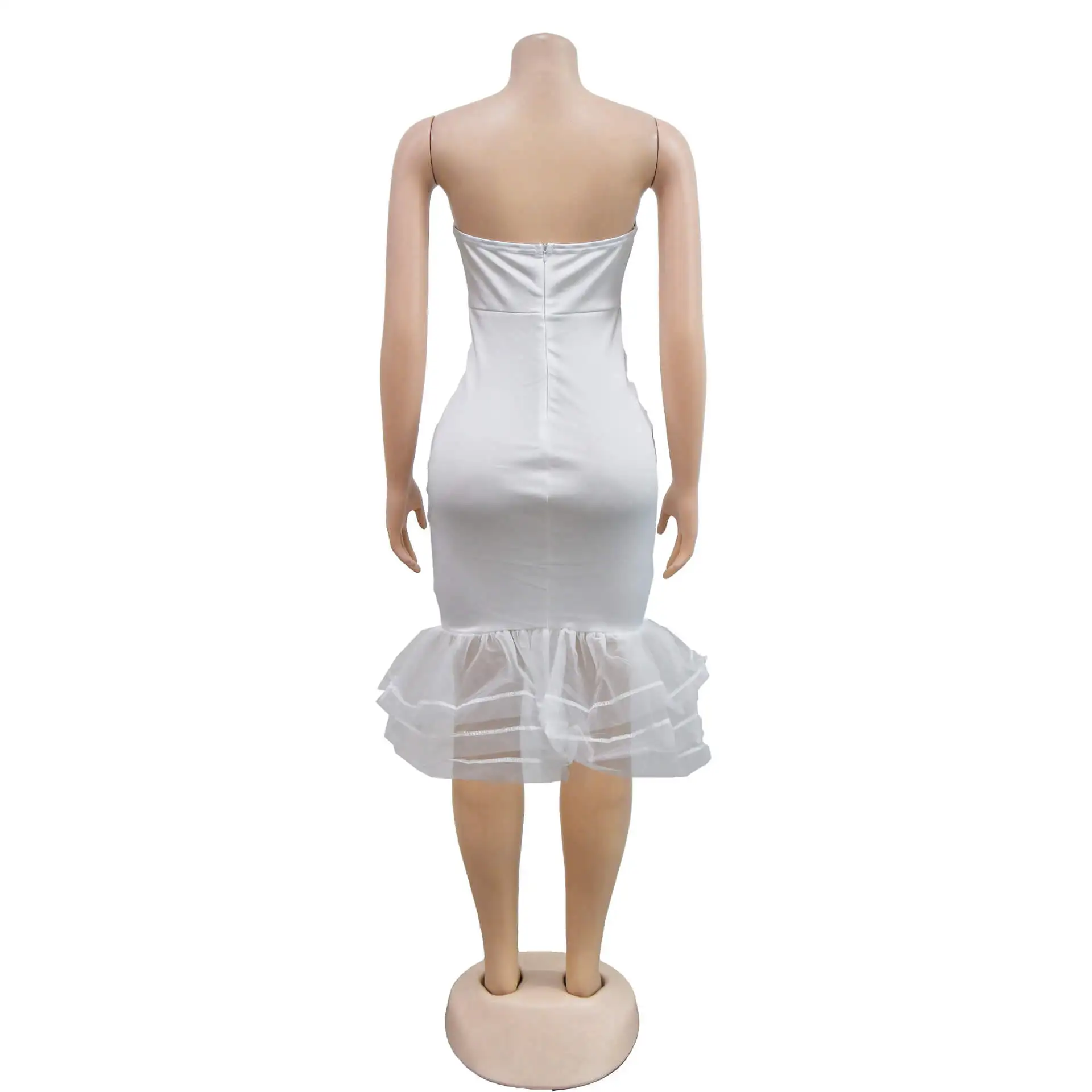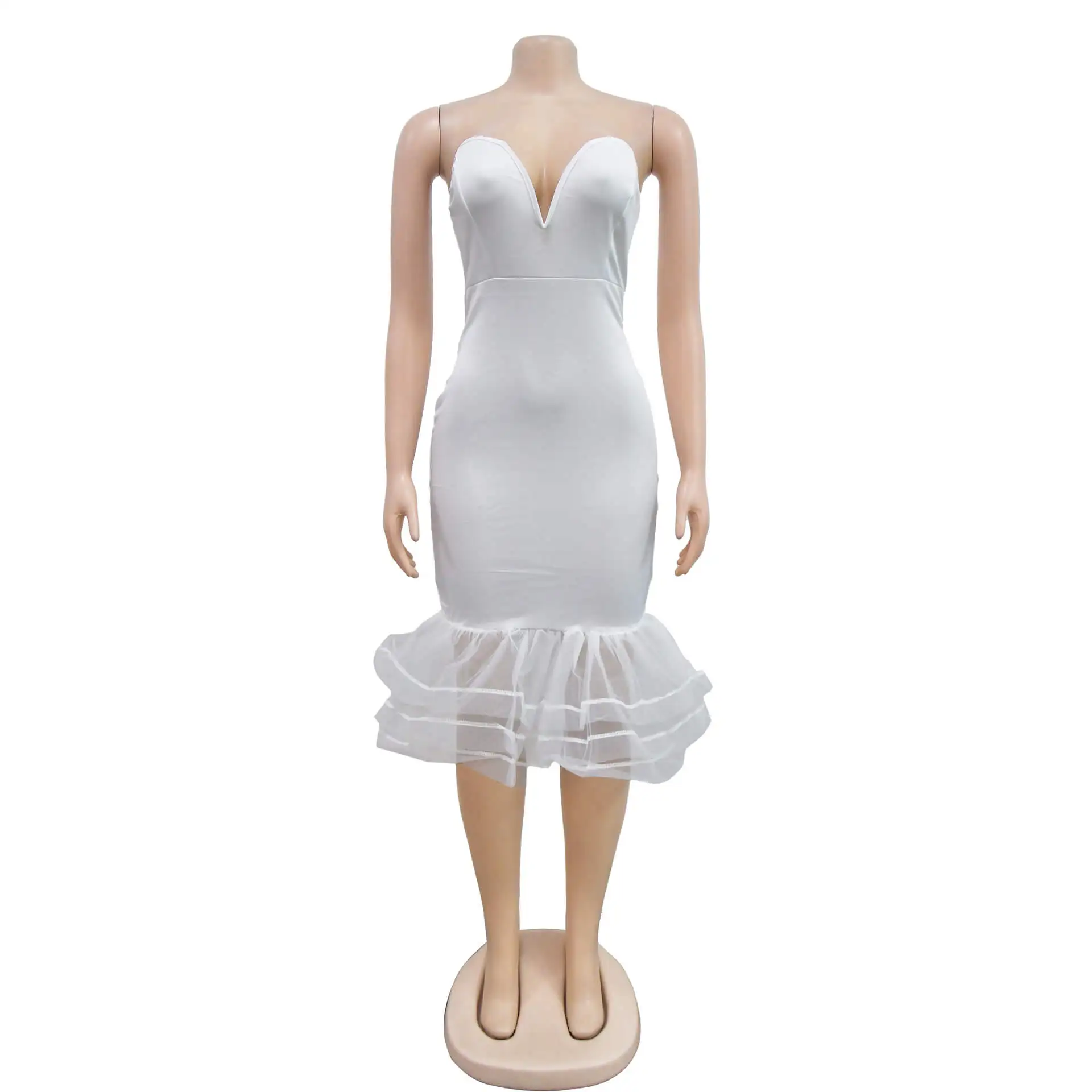 Europe And The United States Fashion Women'S Solid Color Sexy Bustier See-Through Mesh Tight Dresses