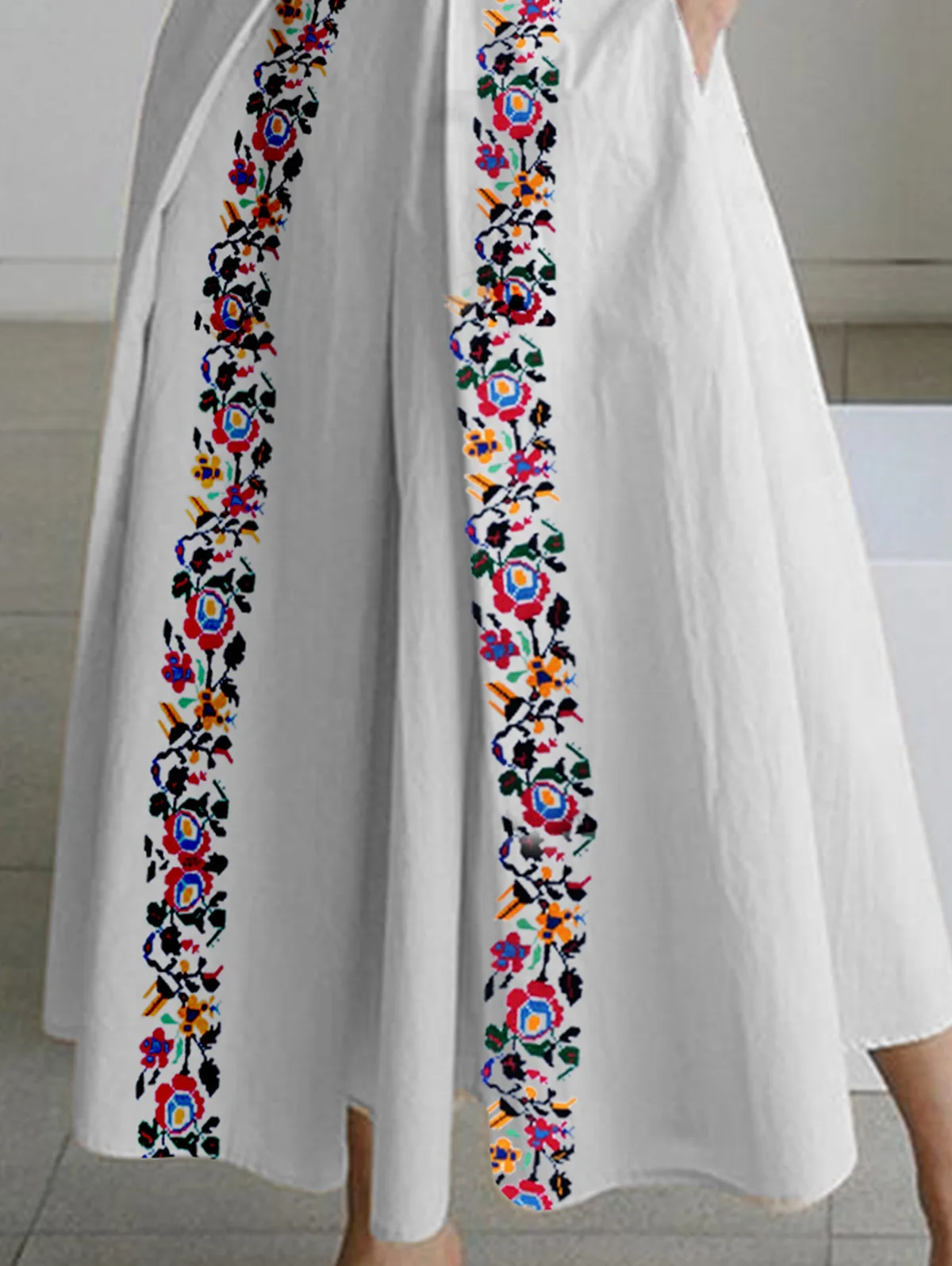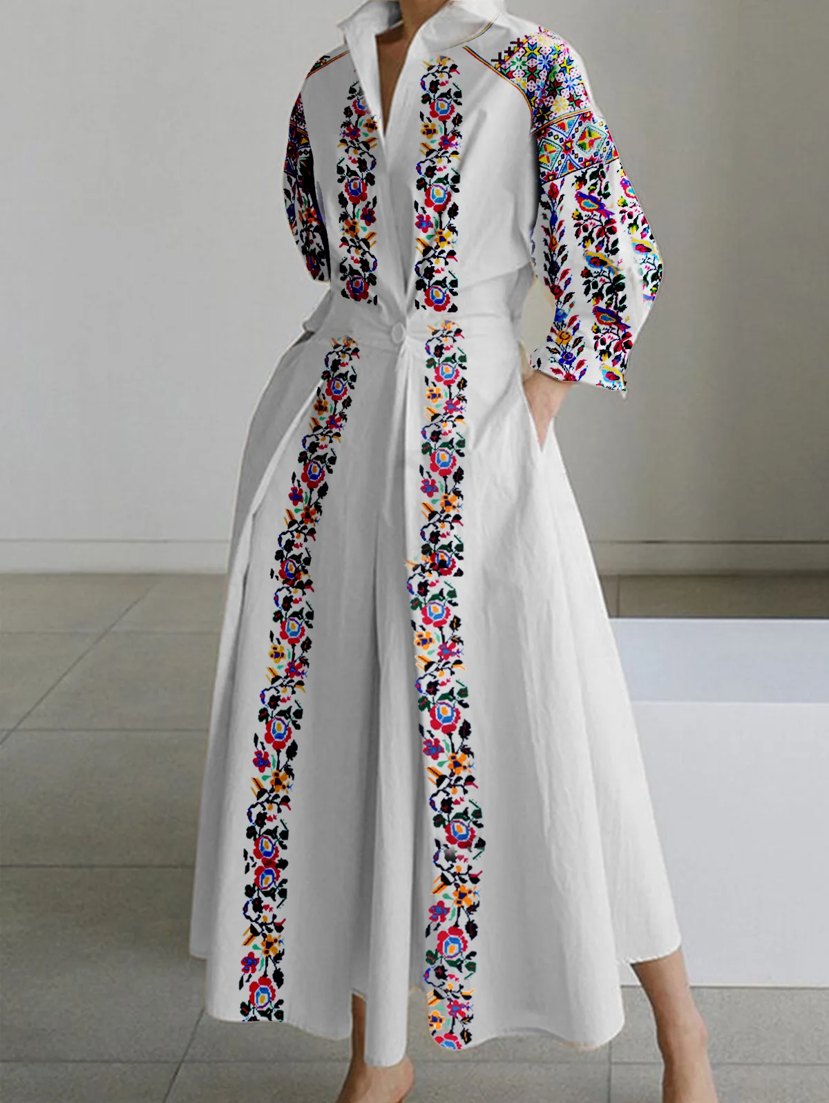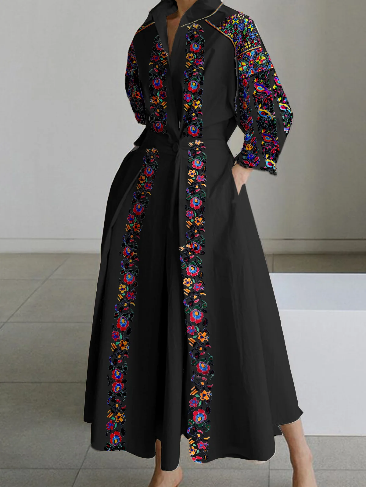 Europe And The United States Foreign Trade Women's Lapel Flower Diagonal Pocket A-line Midi Shirt Dress