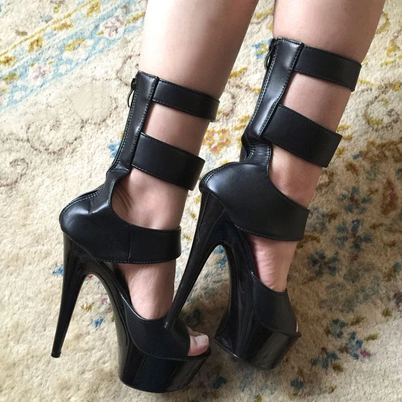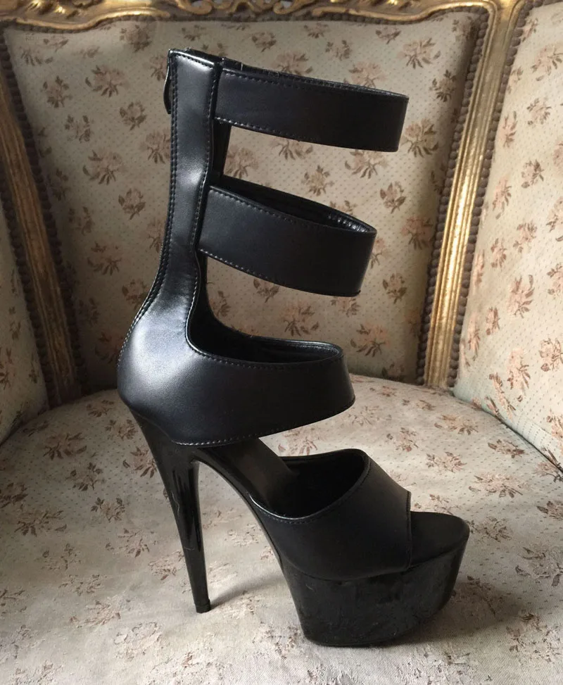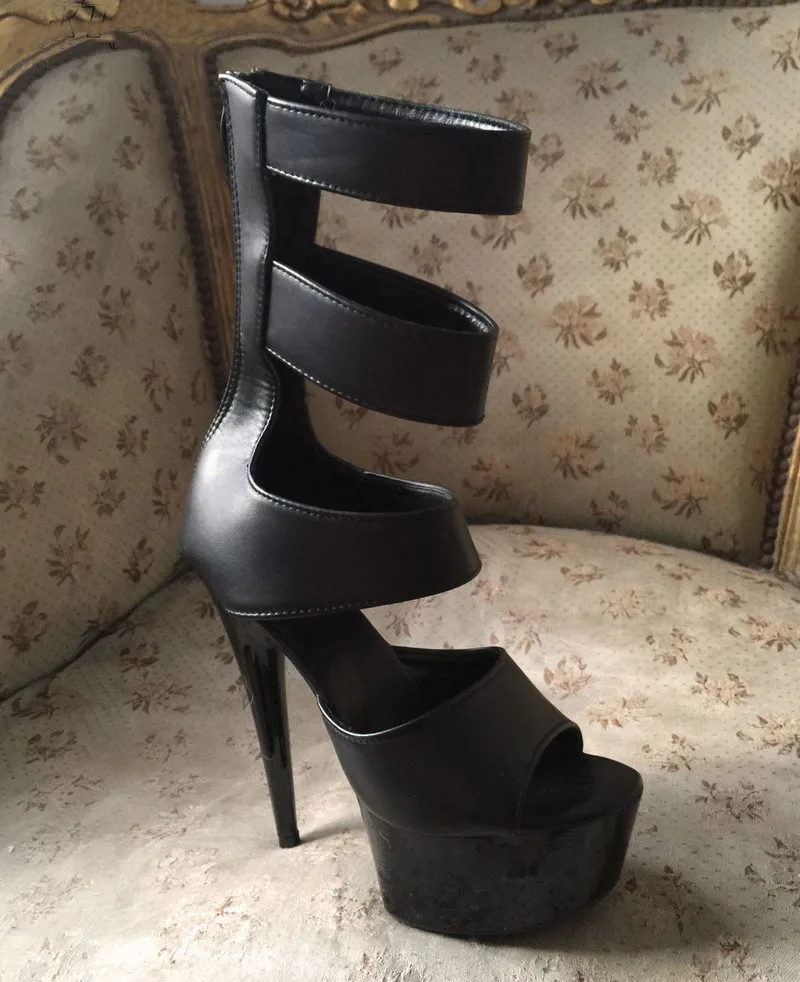 European and American black thin heel fish mouth hollow short boots 15 cm sexy women's high heels
