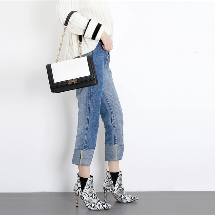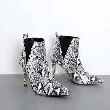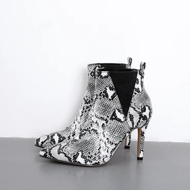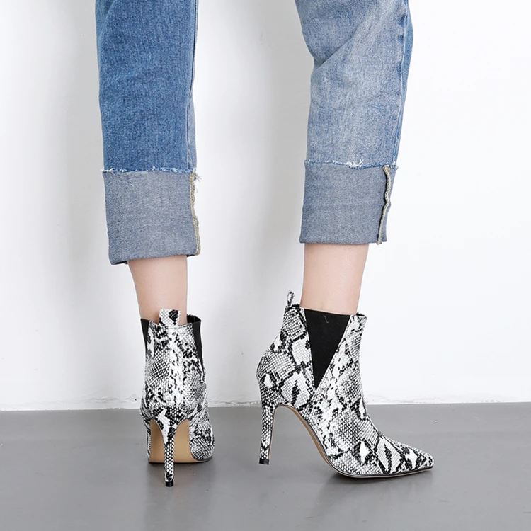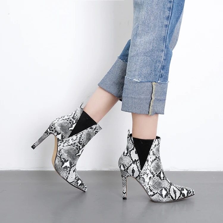 European and American cross border elastic snake skin slim heel short boots women's large shoes
