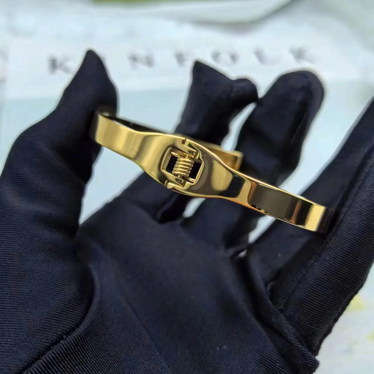European and American fashion versatile trend charm spring bracelet 316L stainless steel women's bracelet plated with 18K gold b