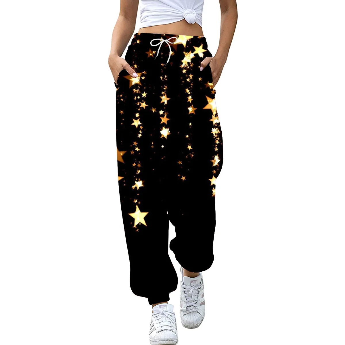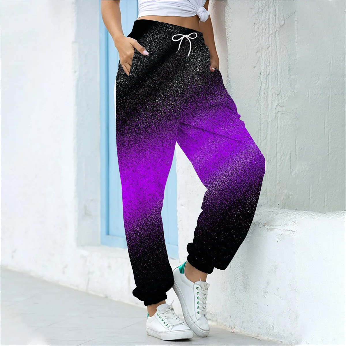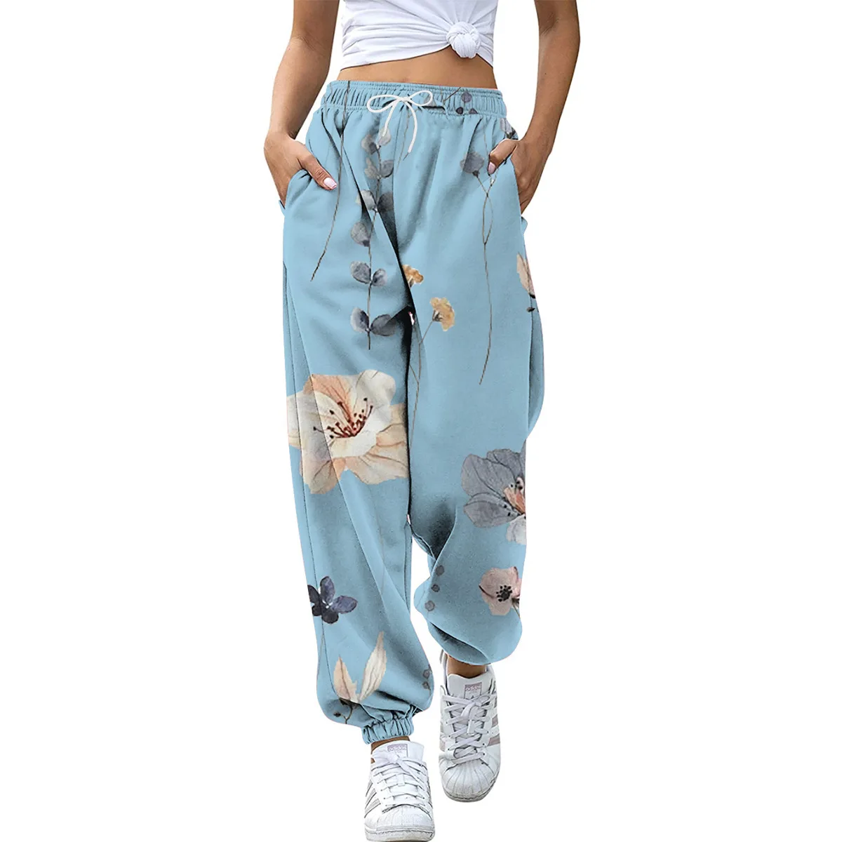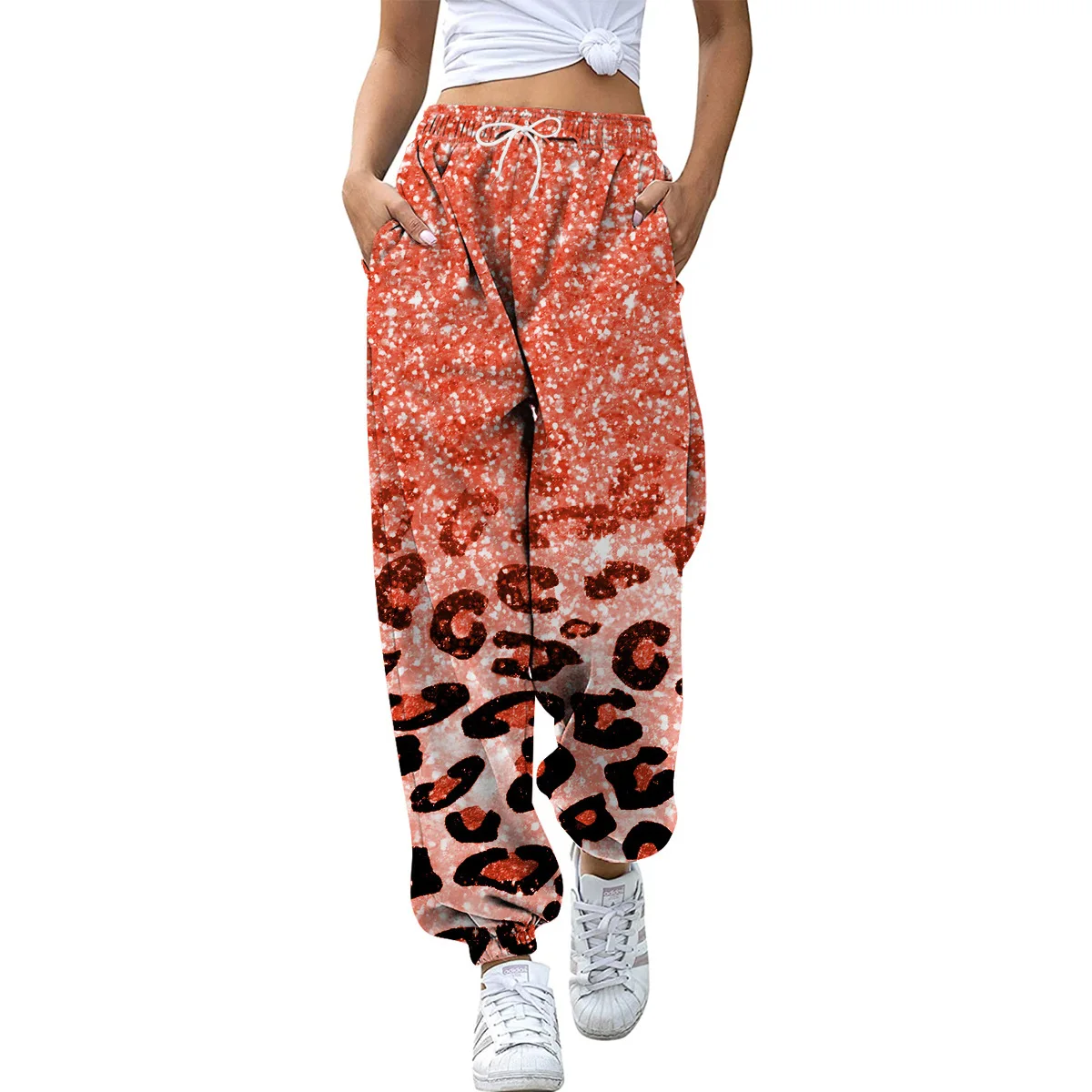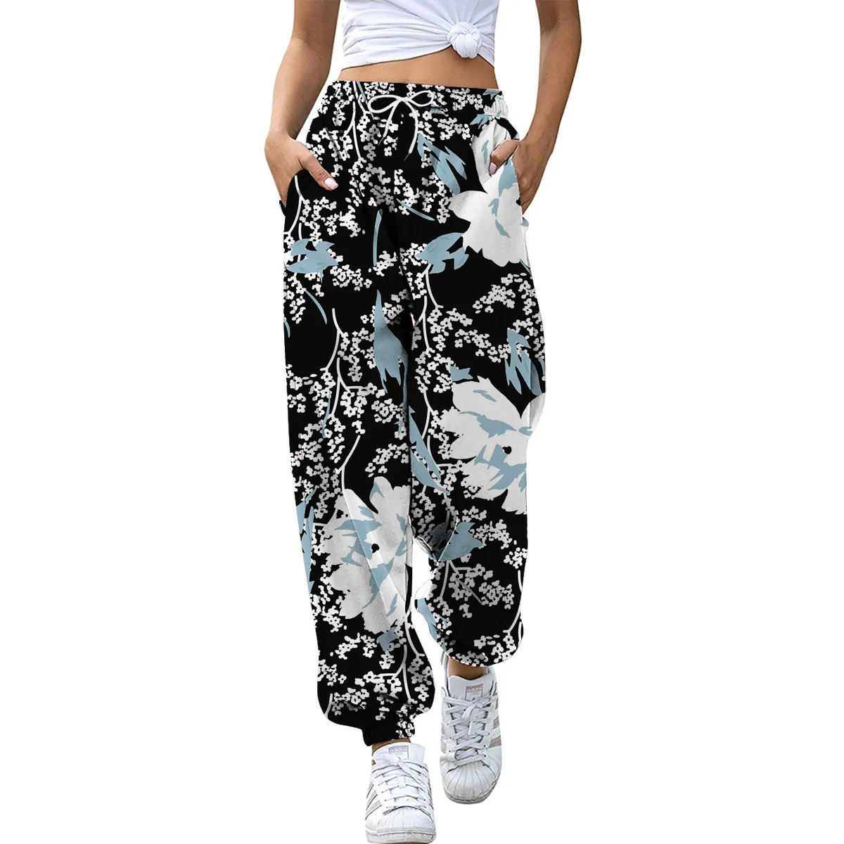 European Women's Digital printing 2023 Spring and Autumn New loose Foot-binding sports pants High waist All-match casual pants