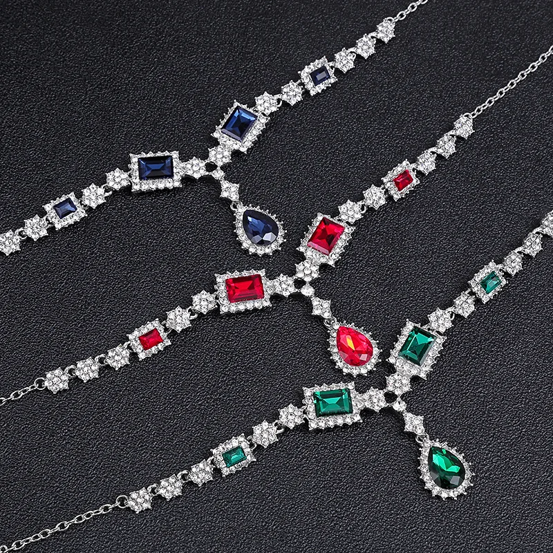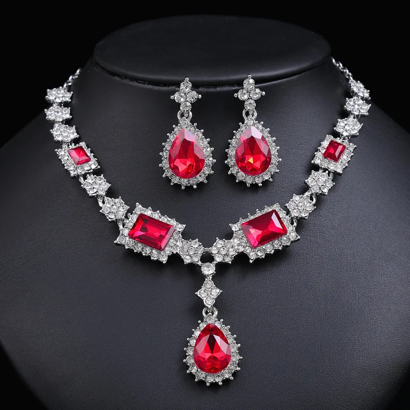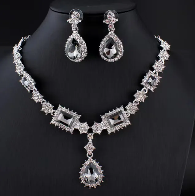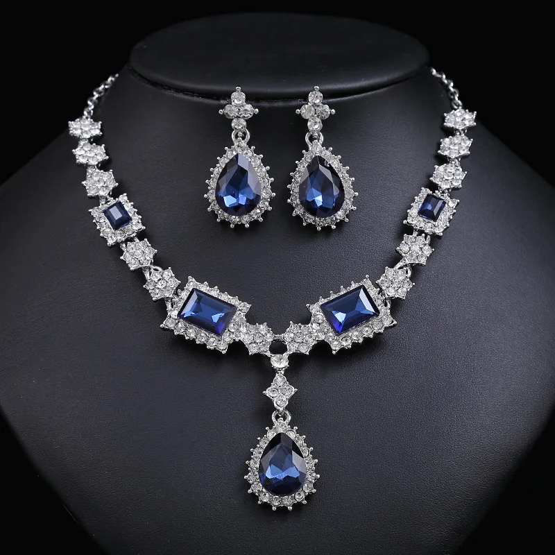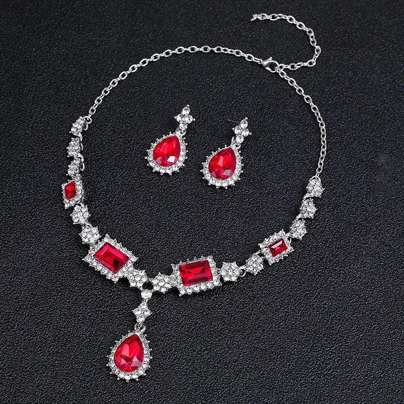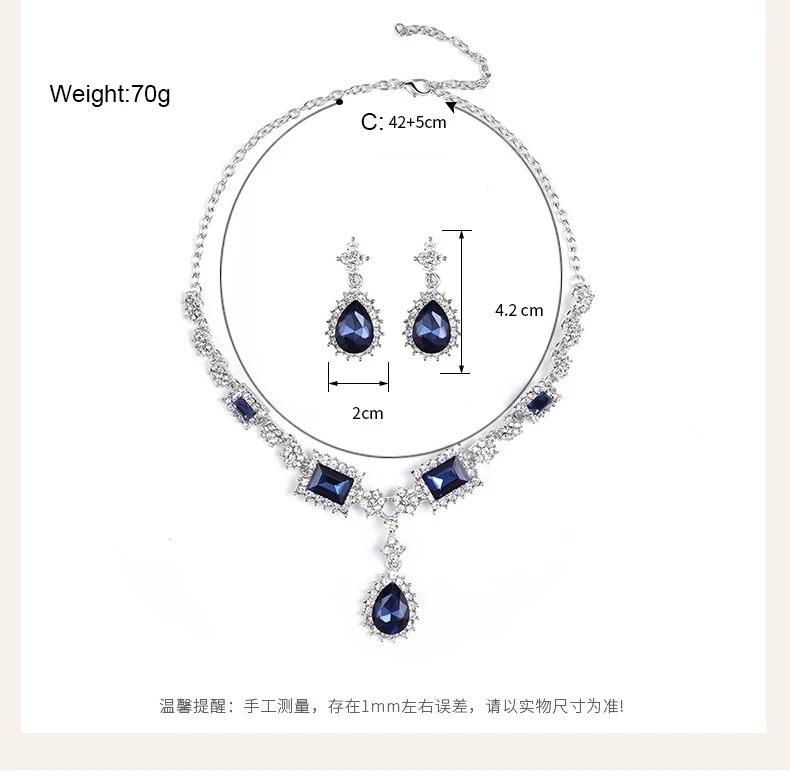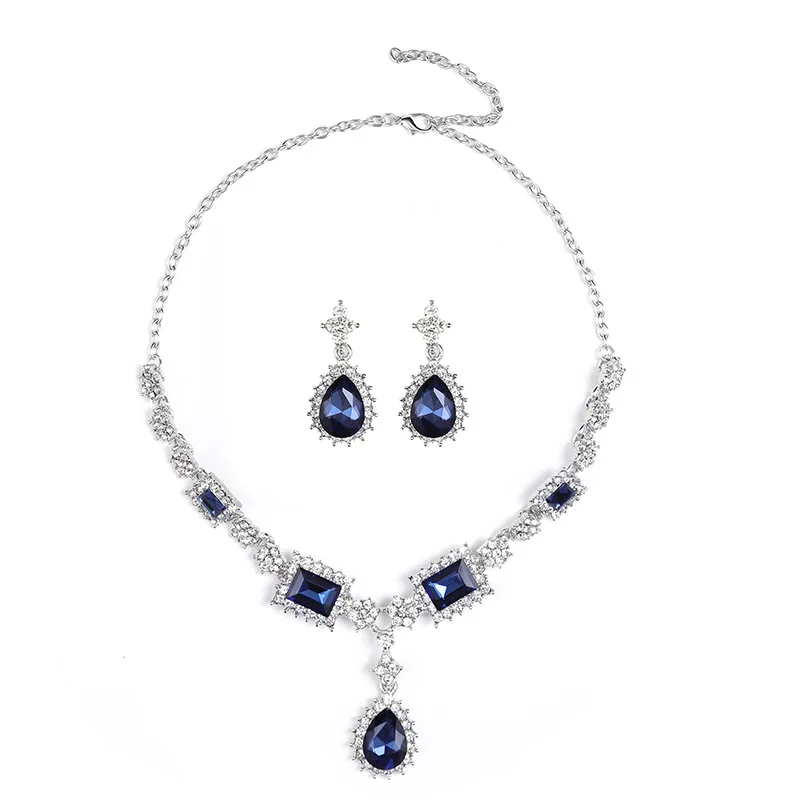 Exaggerated fashion metal geometry flash gem necklace earrings set High-grade crystal jewelry accessories for woman Top Quality