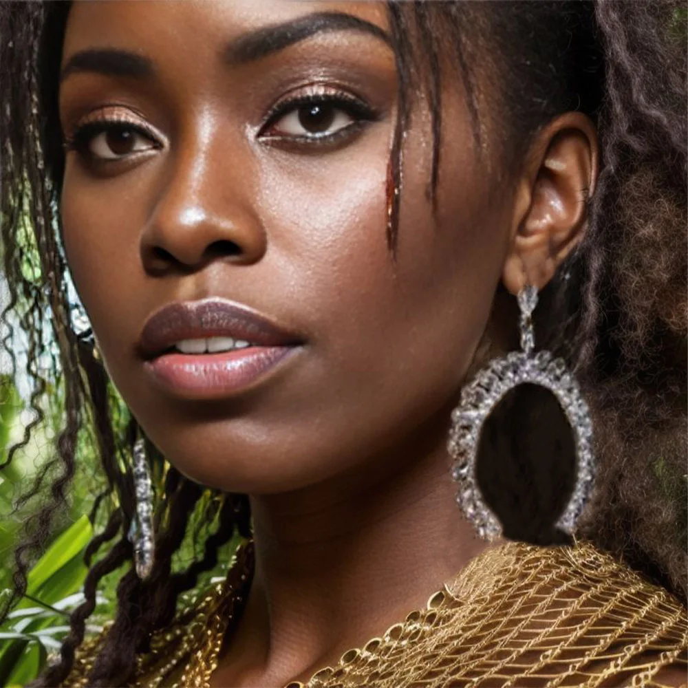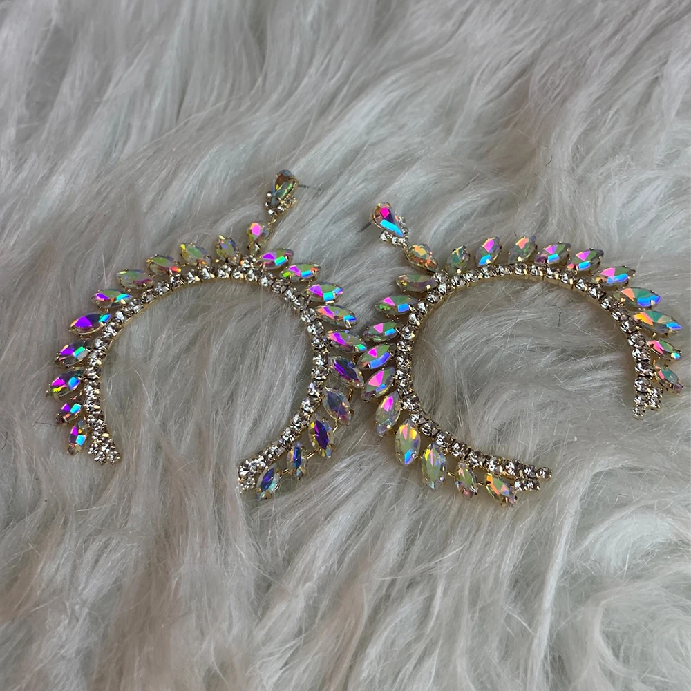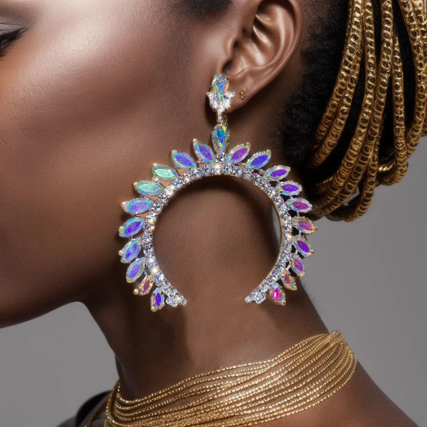 Exaggerated style earring fashion jewelry New women's semi-circular bridal shiny zirconia earrings luxury jewelry earrings