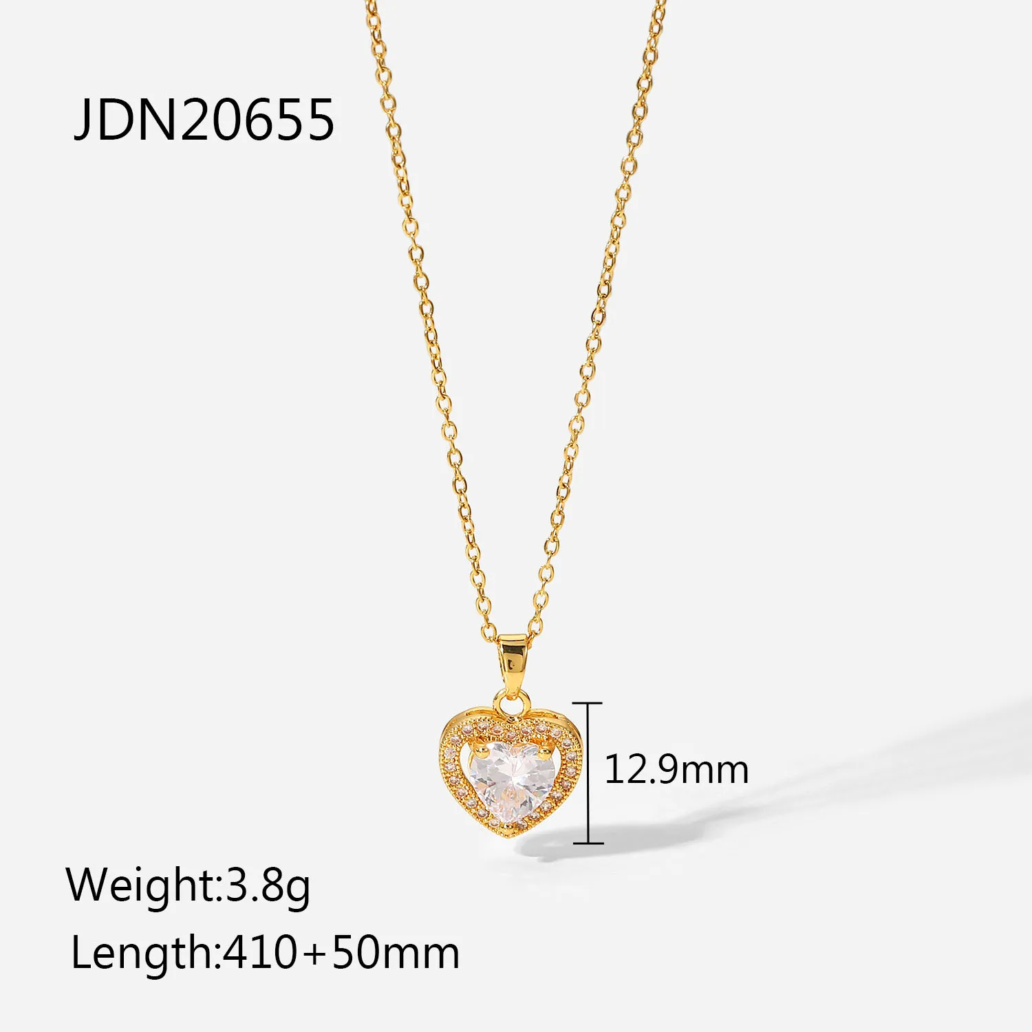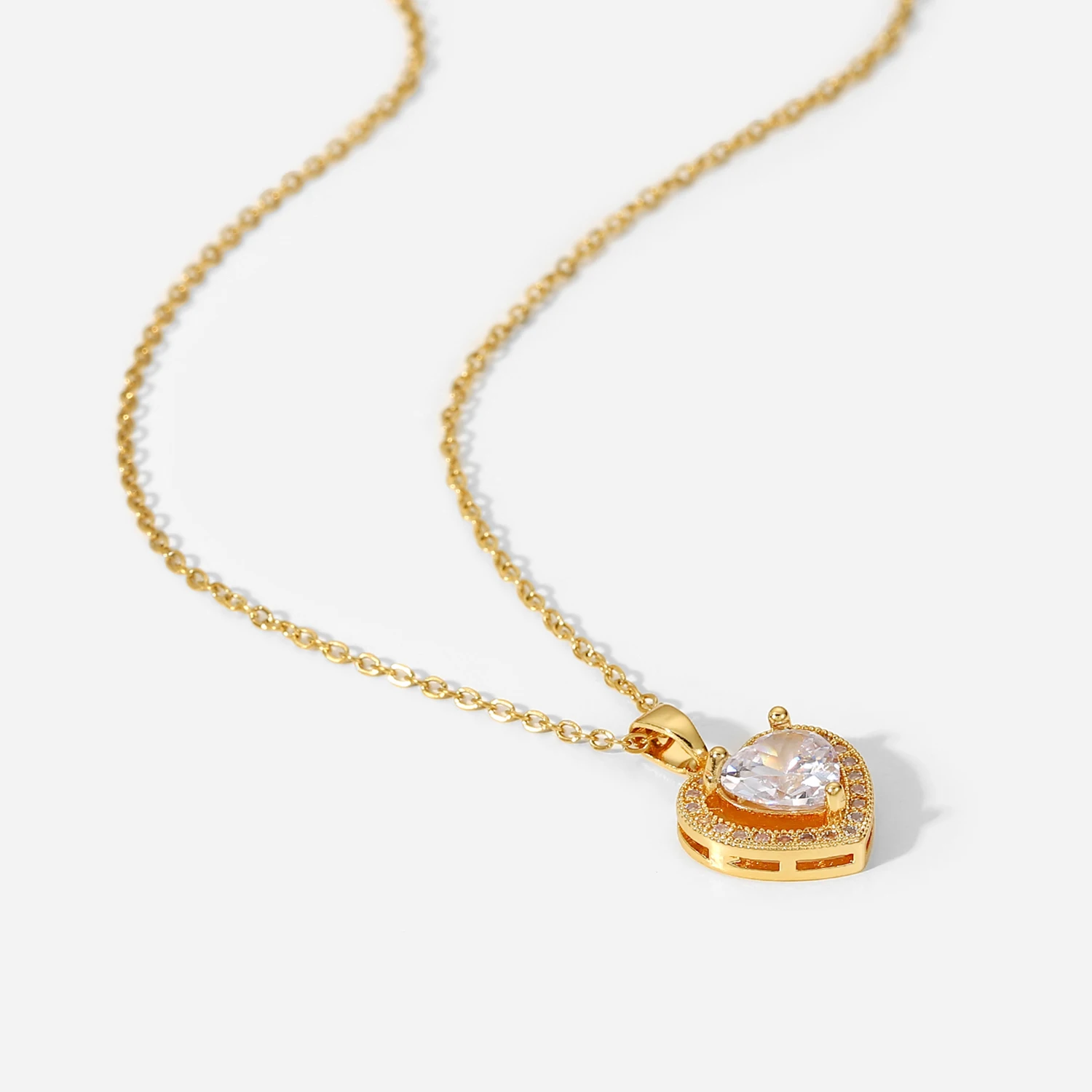 Exquisite Women Wedding Bridal Jewelry Stainless Steel Gold Large Single Shiny Crystal Heart Pendant Necklace For Engagement