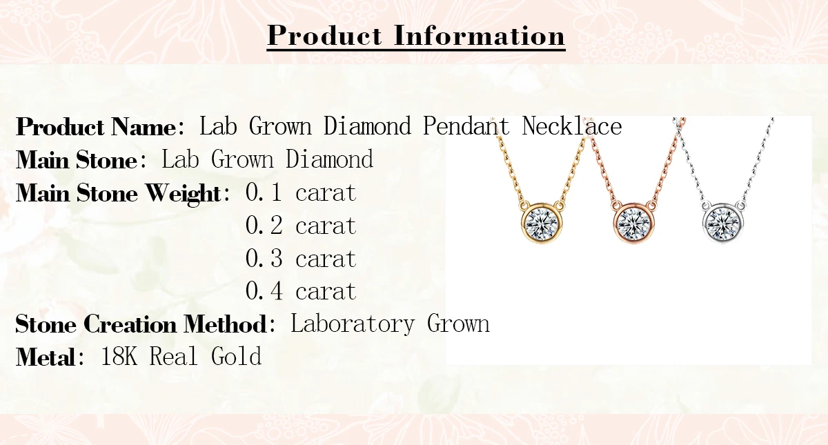 Factory Custom Lab made diamond 18K Au750 Gold Pendant Necklace