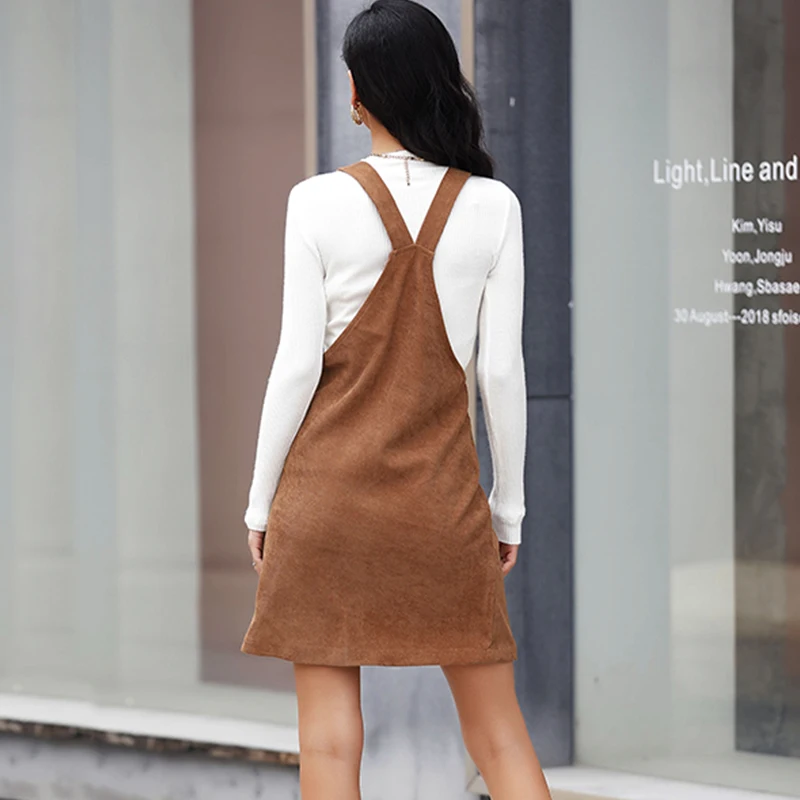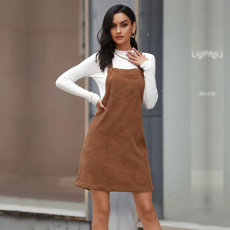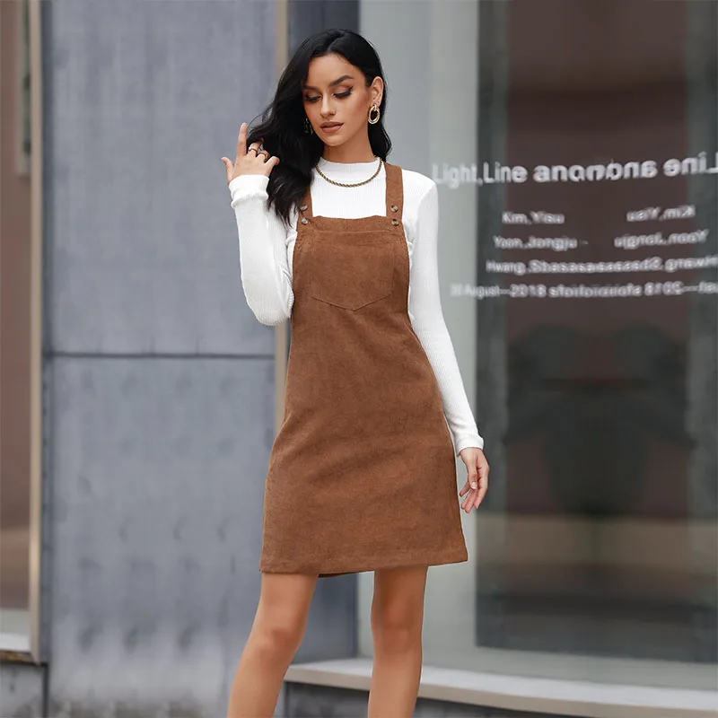 Factory Custom Latest Design Ladies Corduroy Suspender Casual Overalls Dress