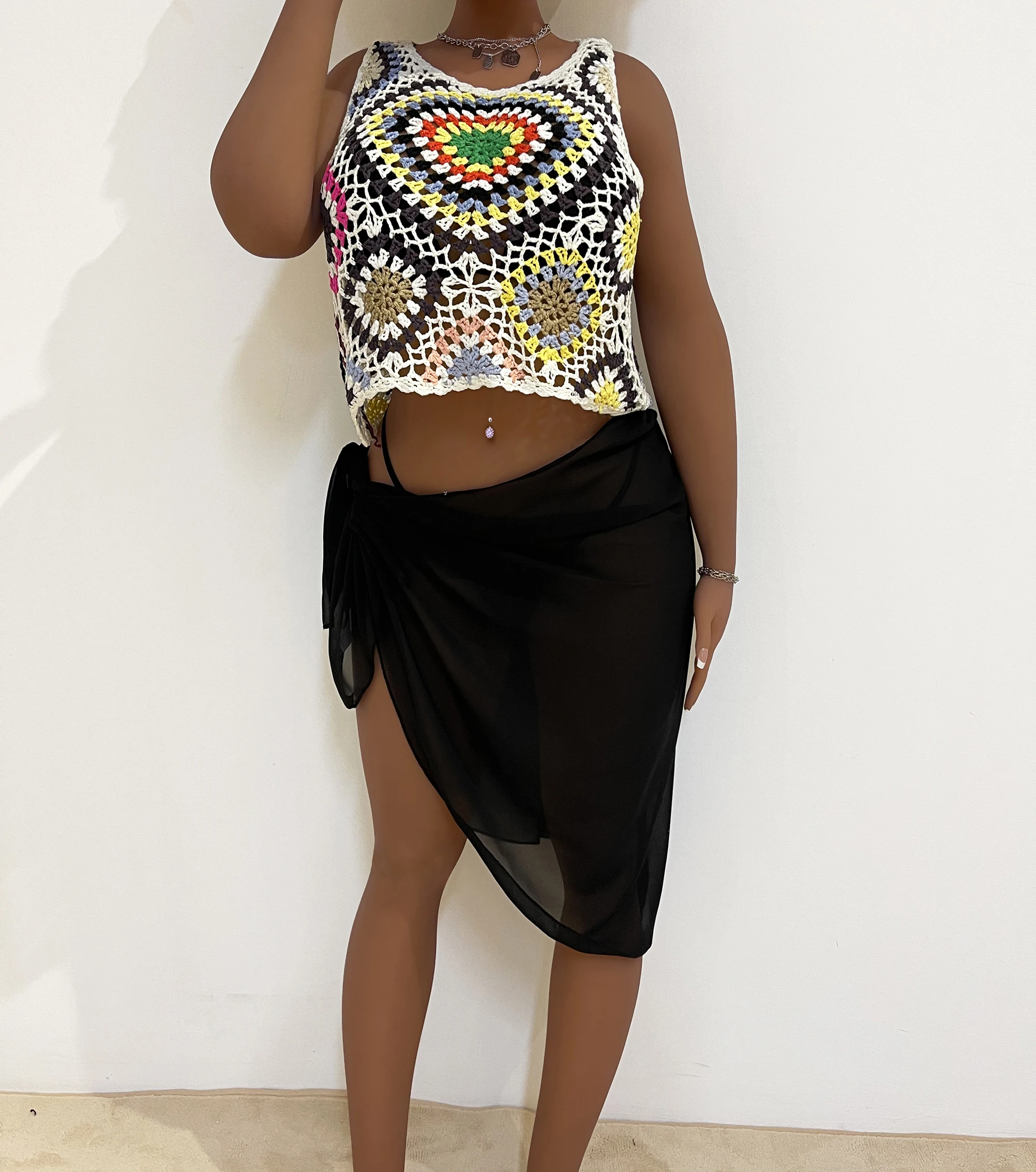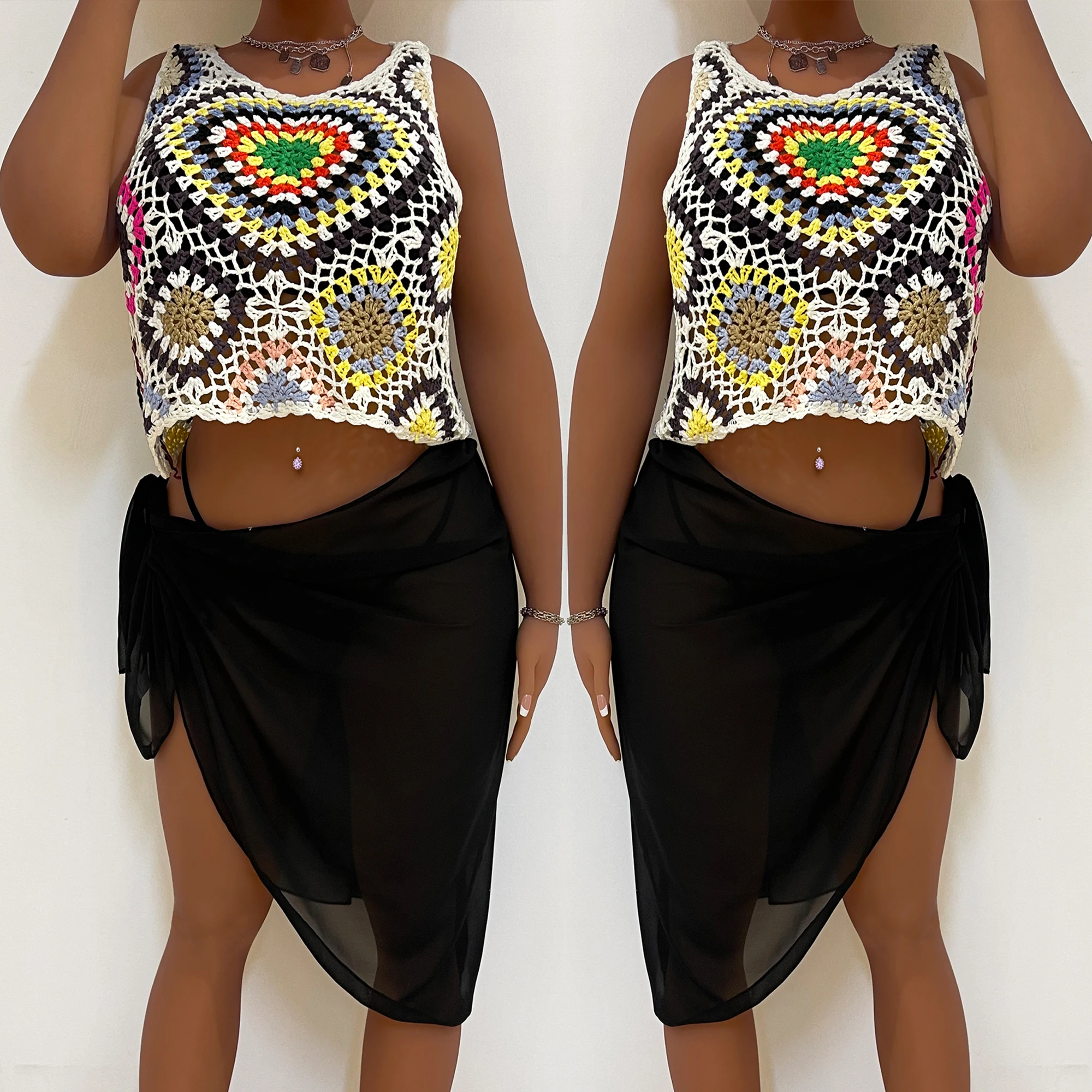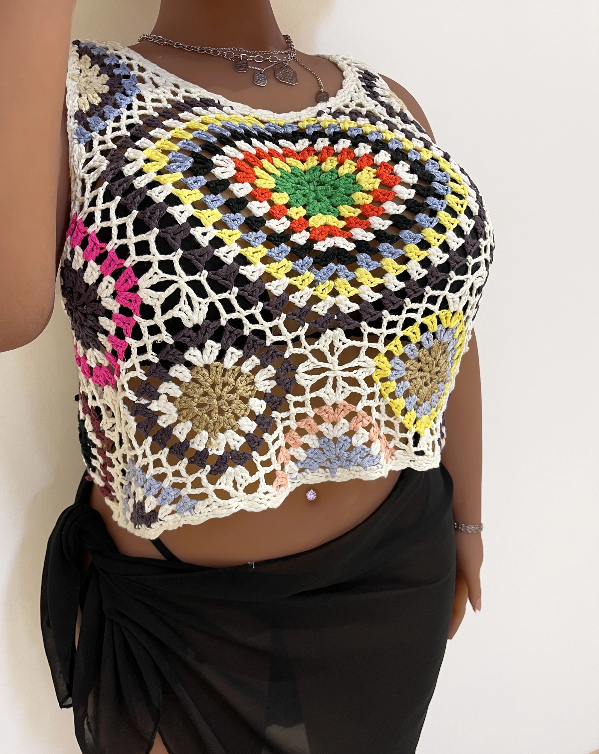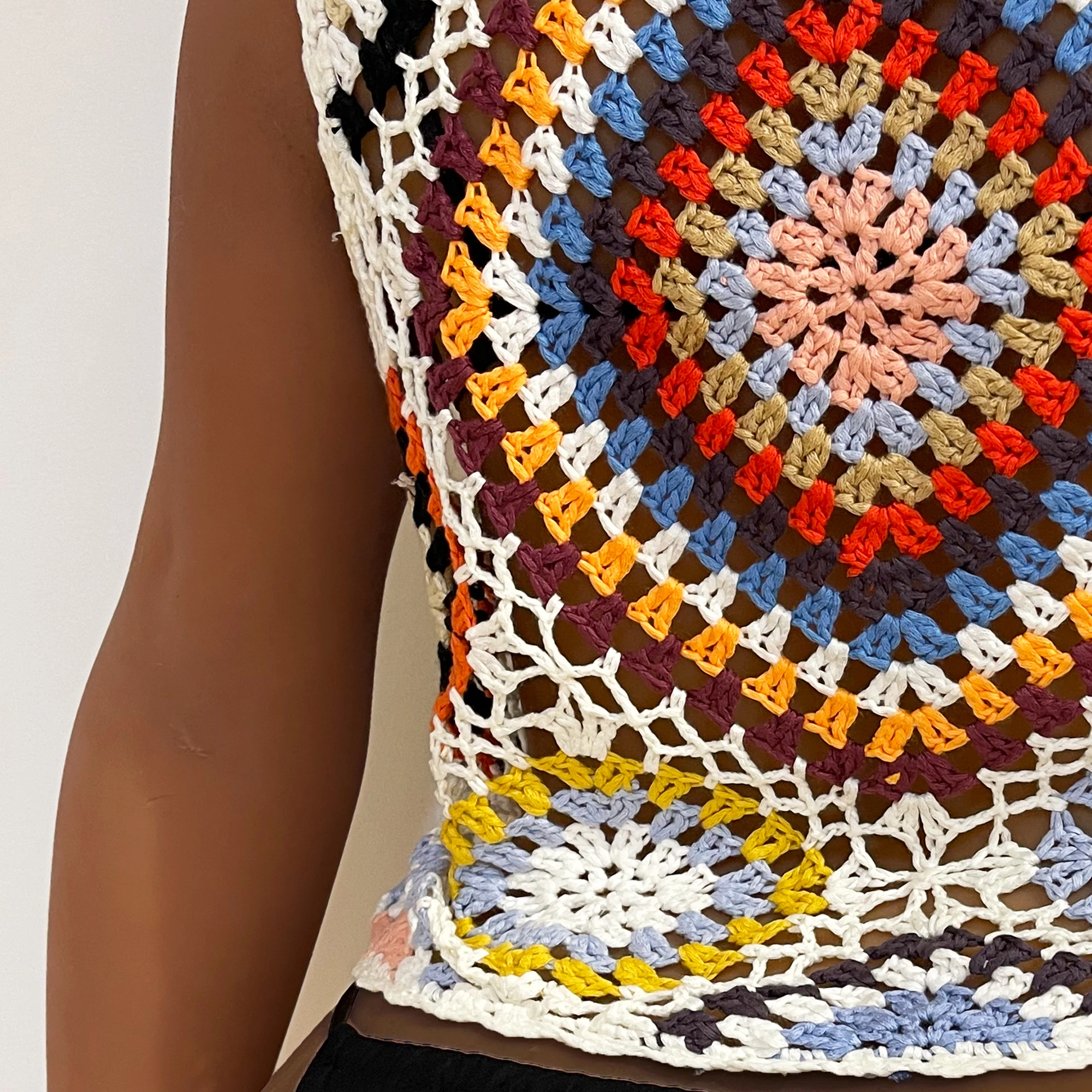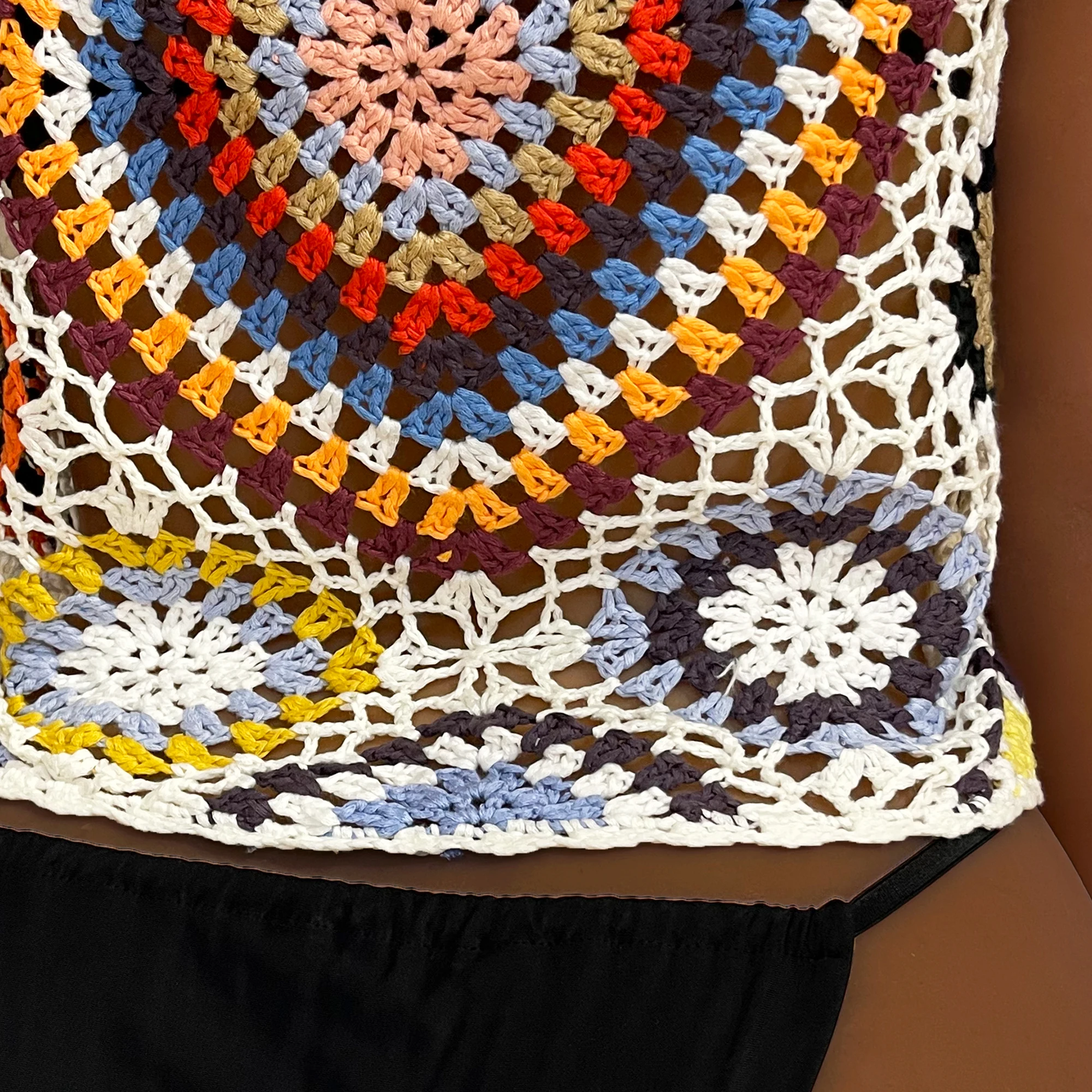 Factory Summer Granny Square Handmade Crochet Fringe Crop Top Cover Up Vest for Women