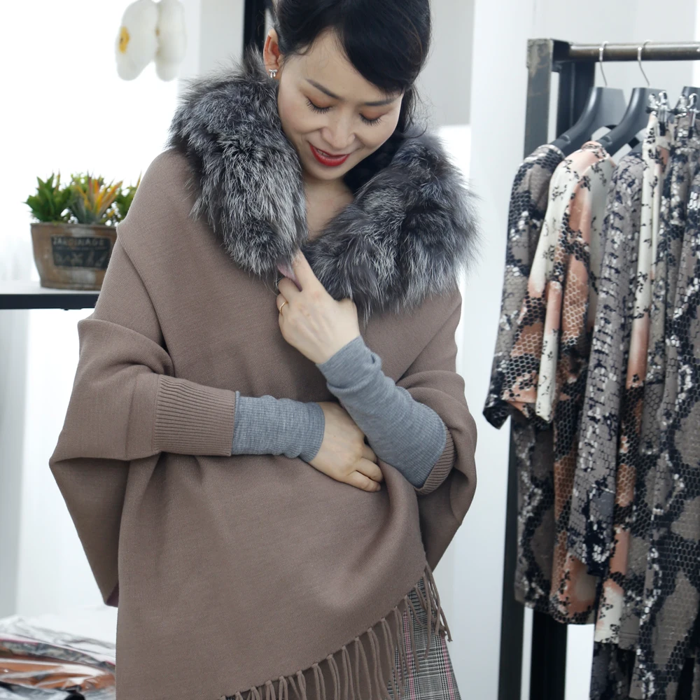 Factory Price Warm Casual Shrug Designs Women Tassel Fox Fur Collar Womens Winter Long Shrug For Women
