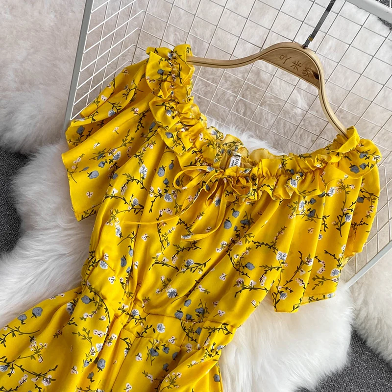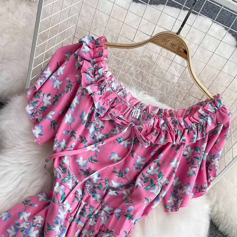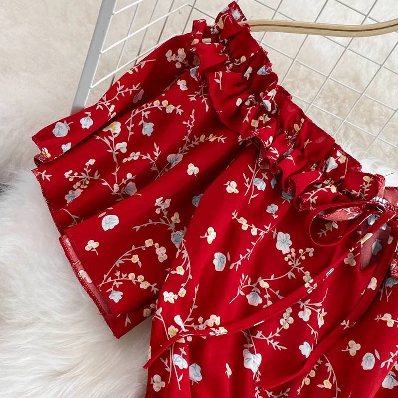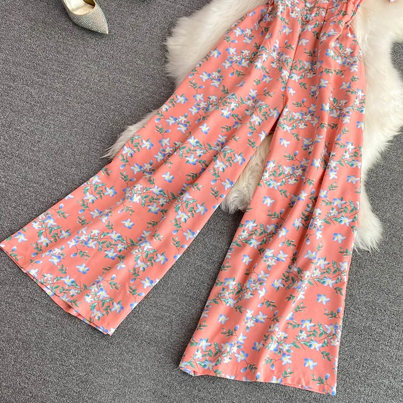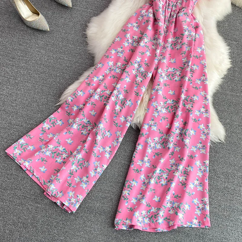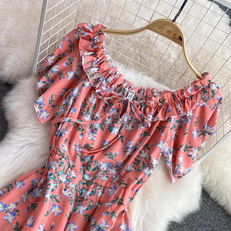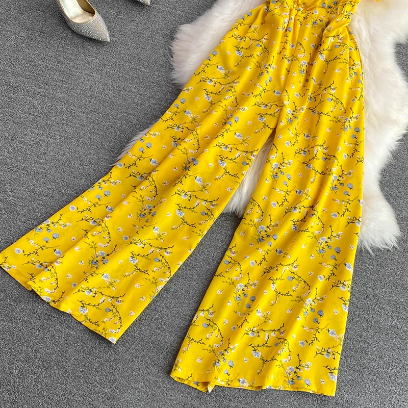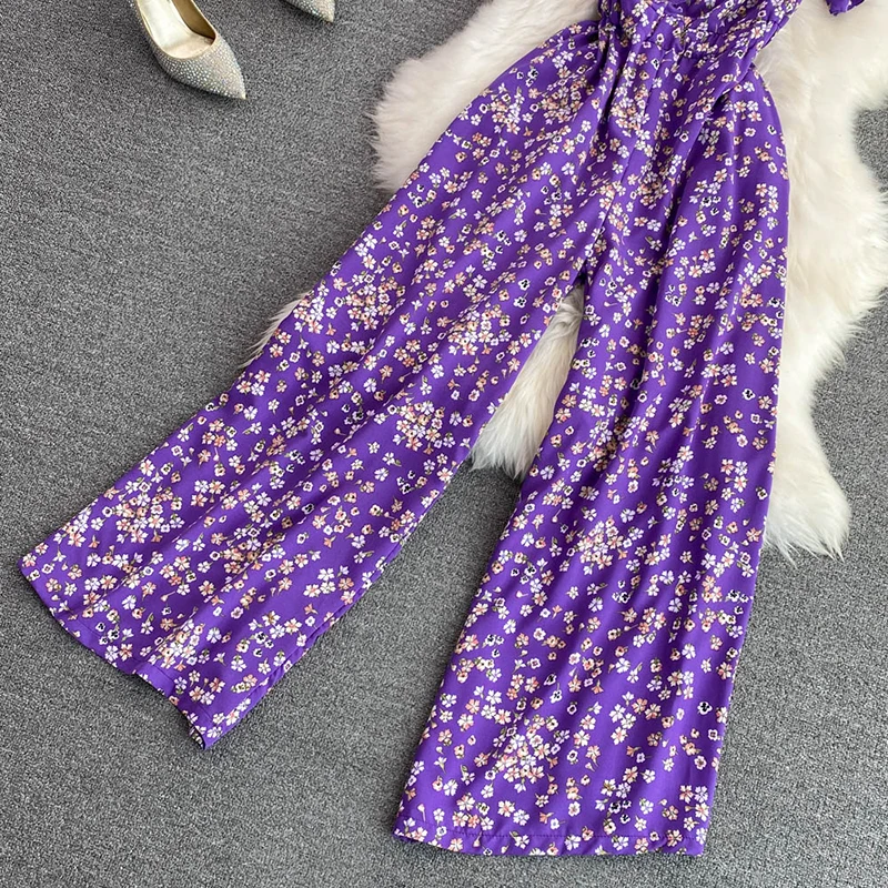 Factory Sexy Slash Neck Jumpsuits Women Floral Print Ruffles Off Shoulder Wide Leg Pants Female Casual Korean Romper Women Slim