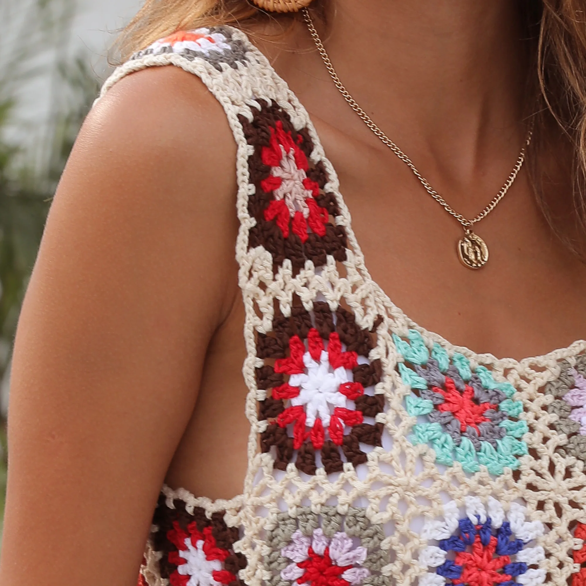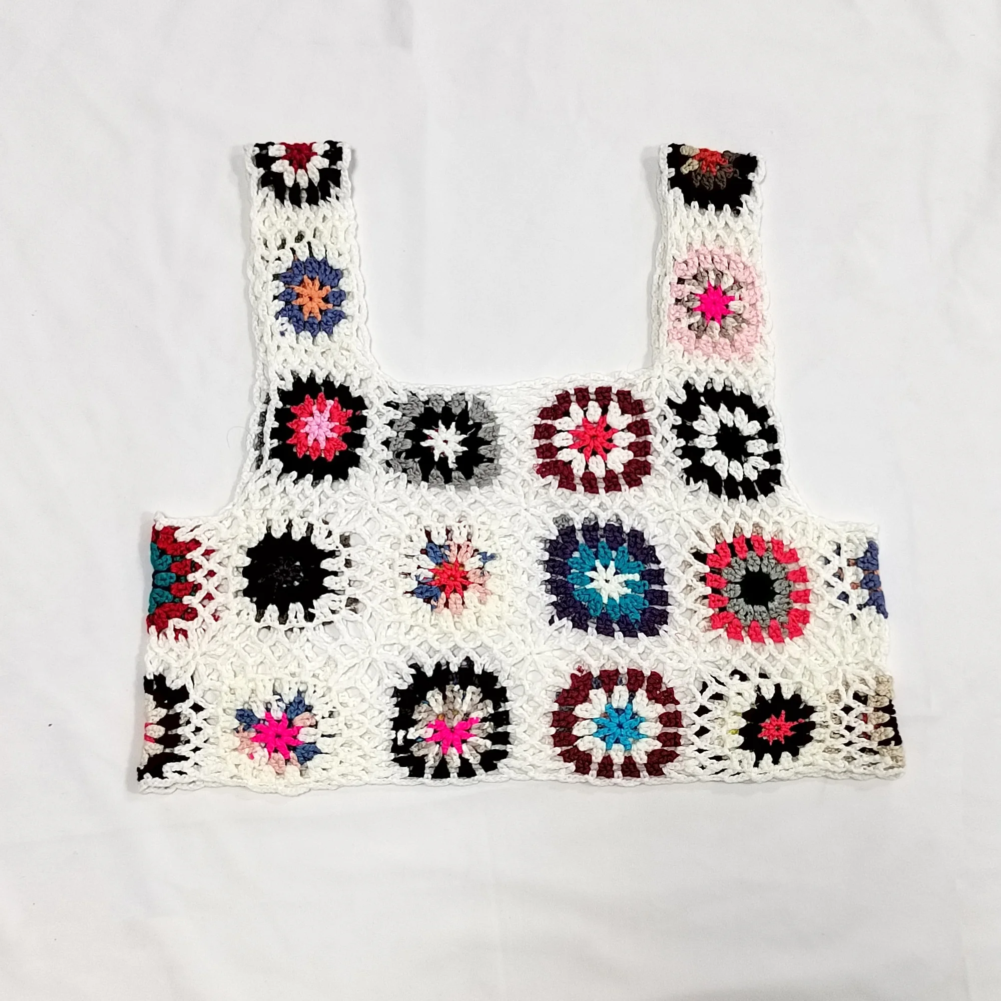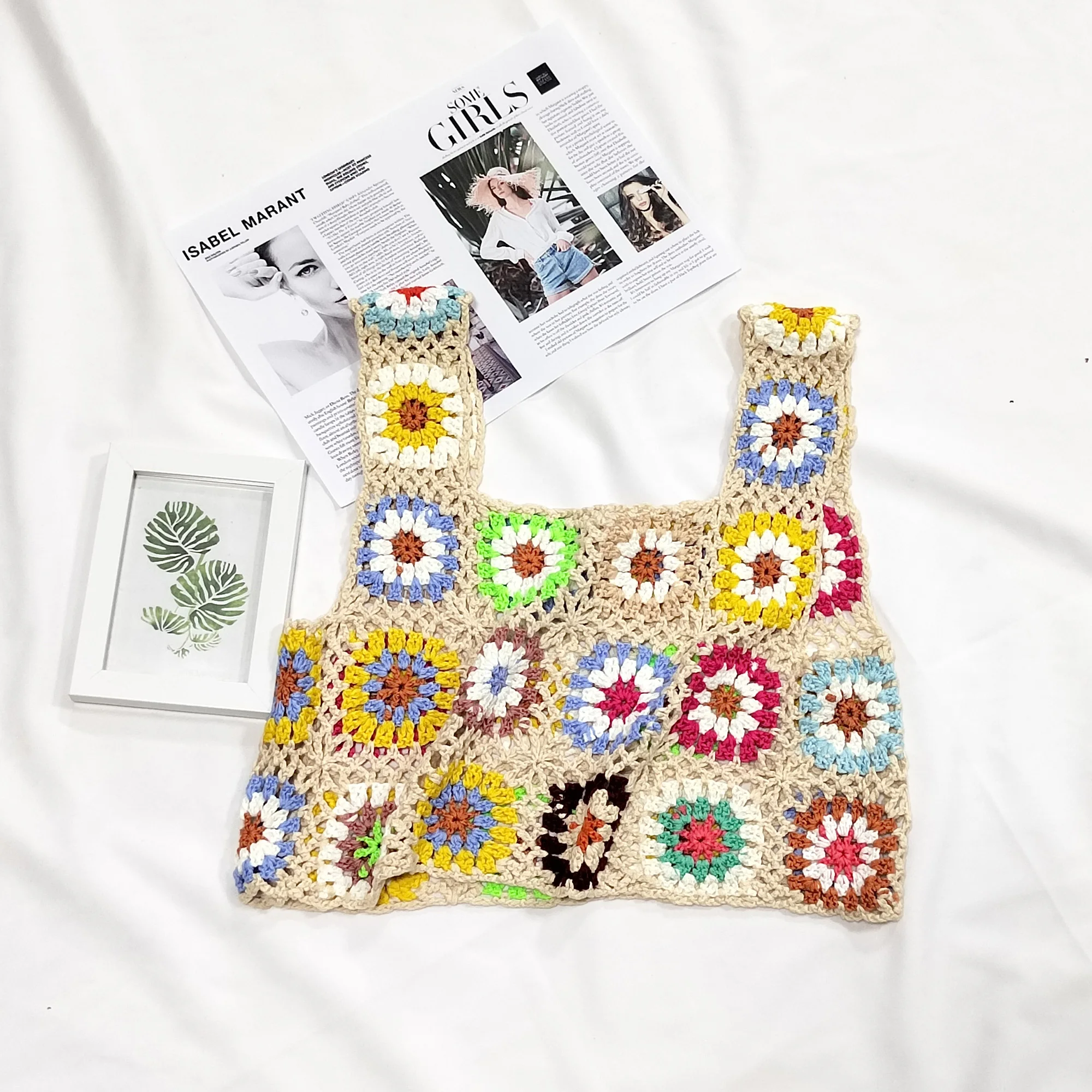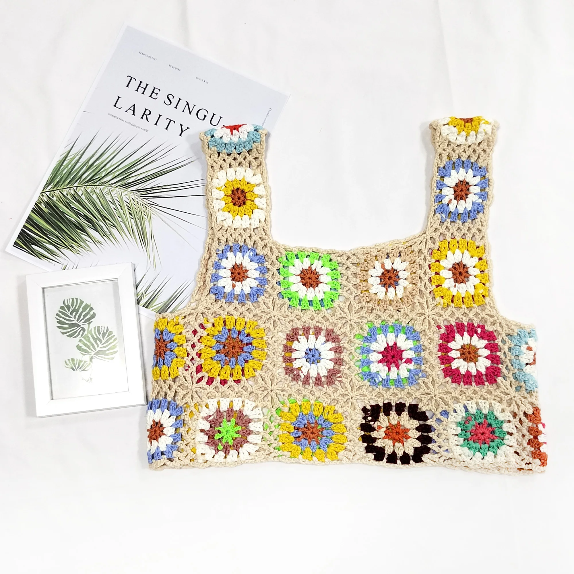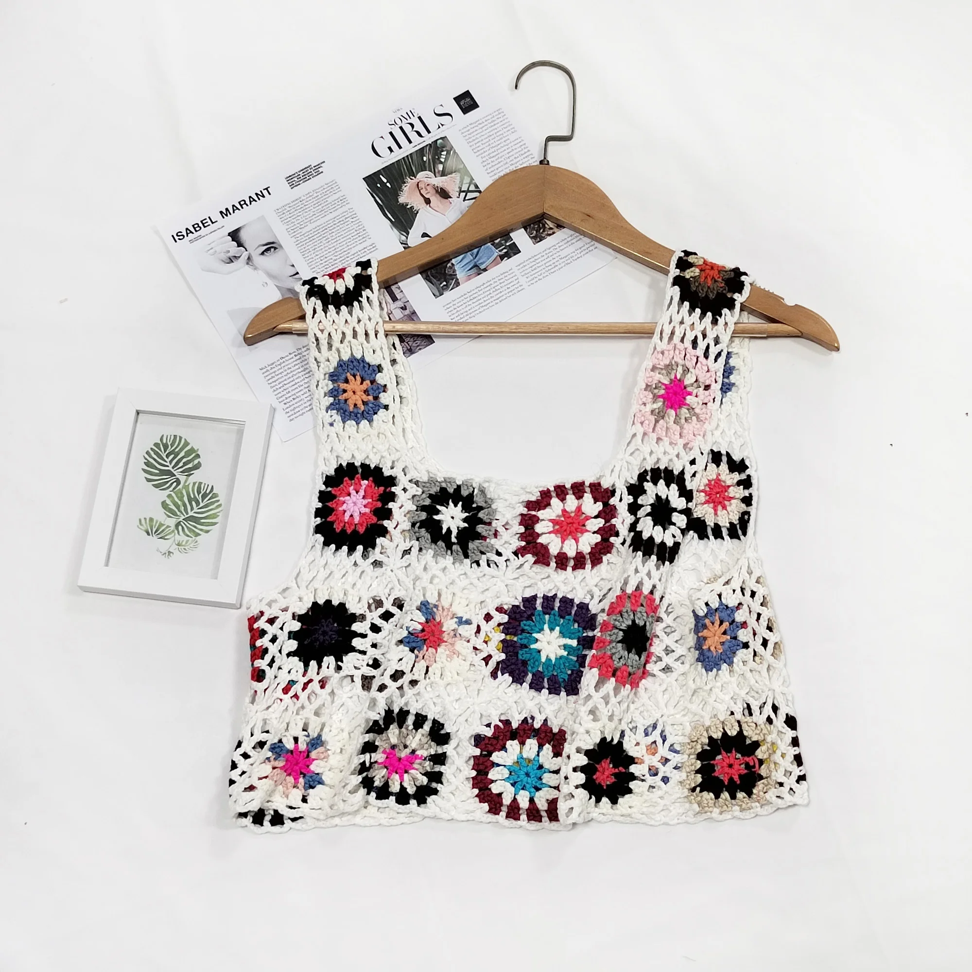 Factory Summer Granny Square Crochet Crop Top Vest Cover Up Tops for Women