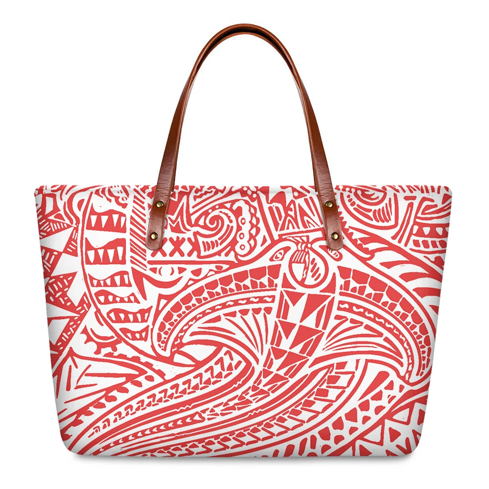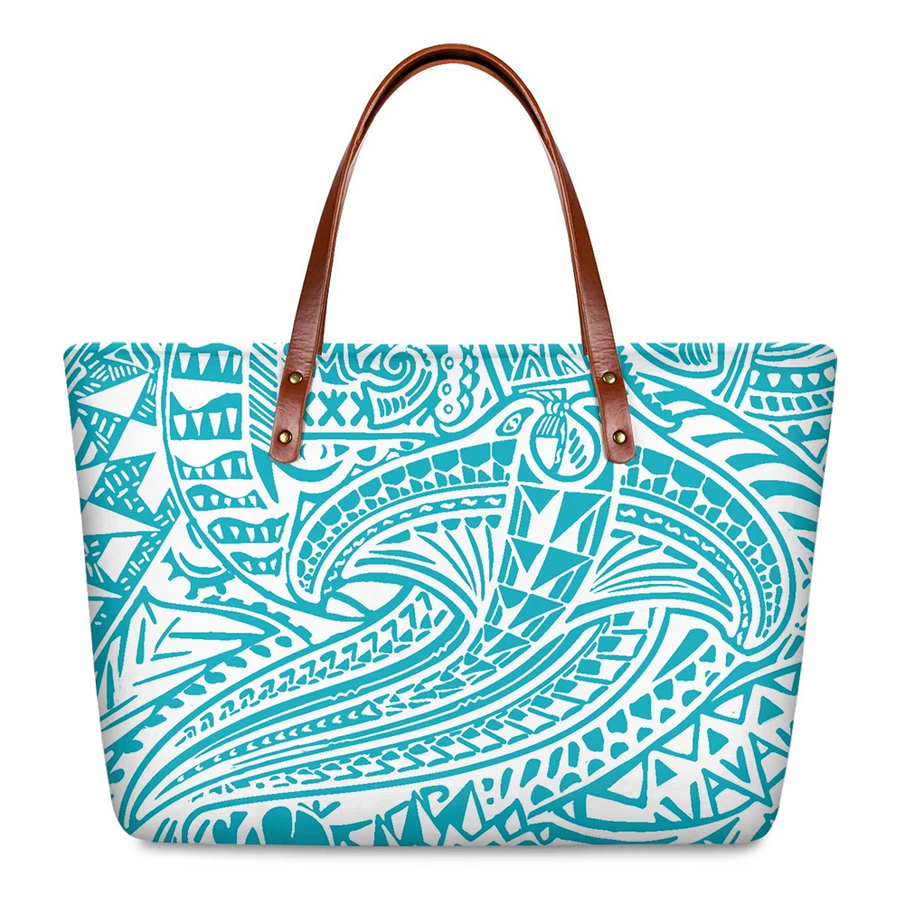 Factory Supply Luxury Ladies Tote Bag For Shopping Tribal Polynesian Floral Fabric Printing Customized Fashion Women Handbags