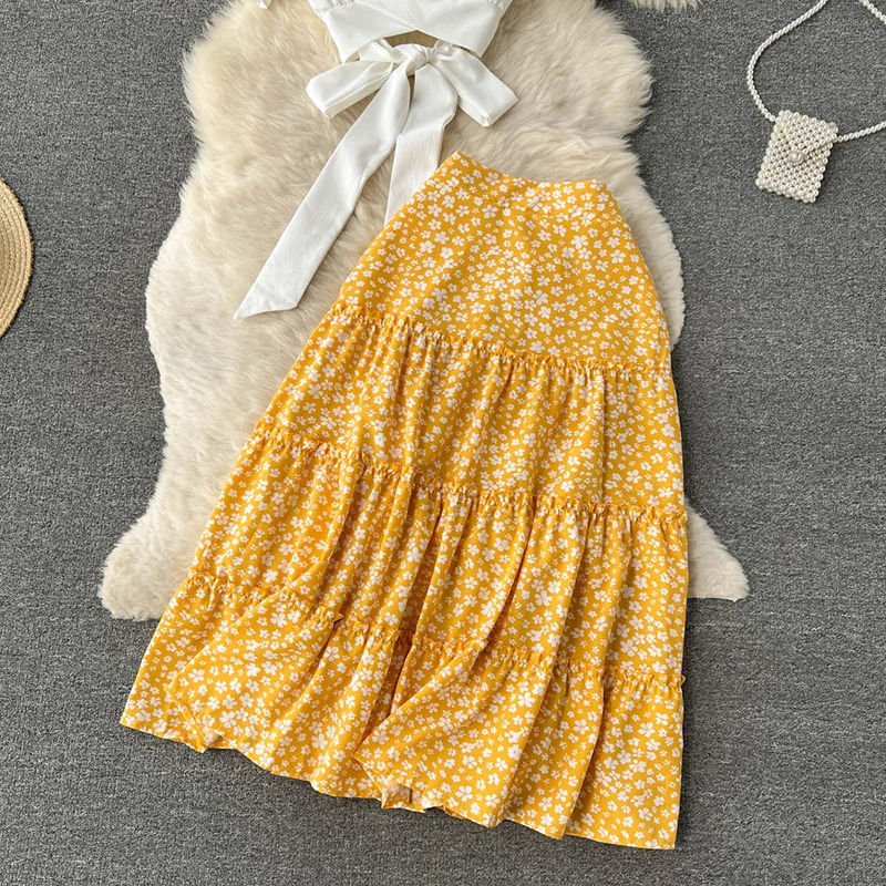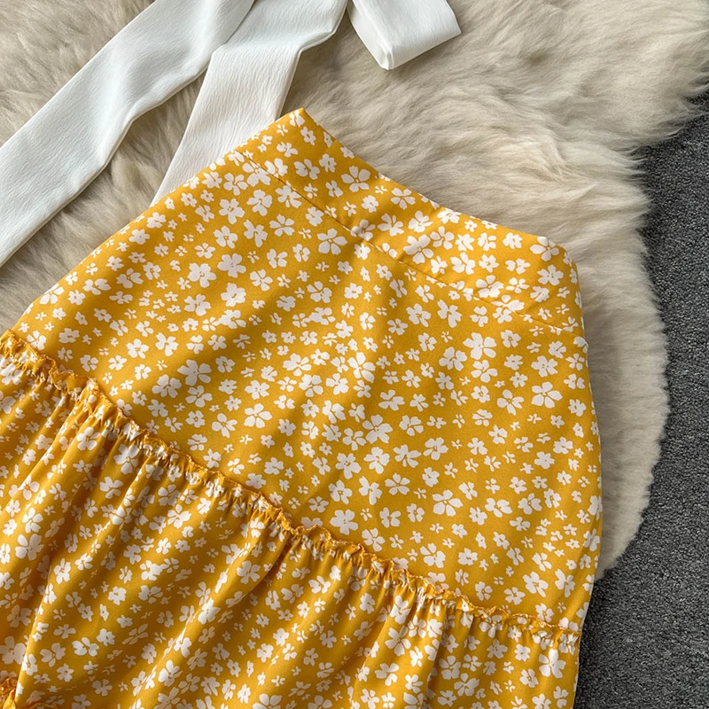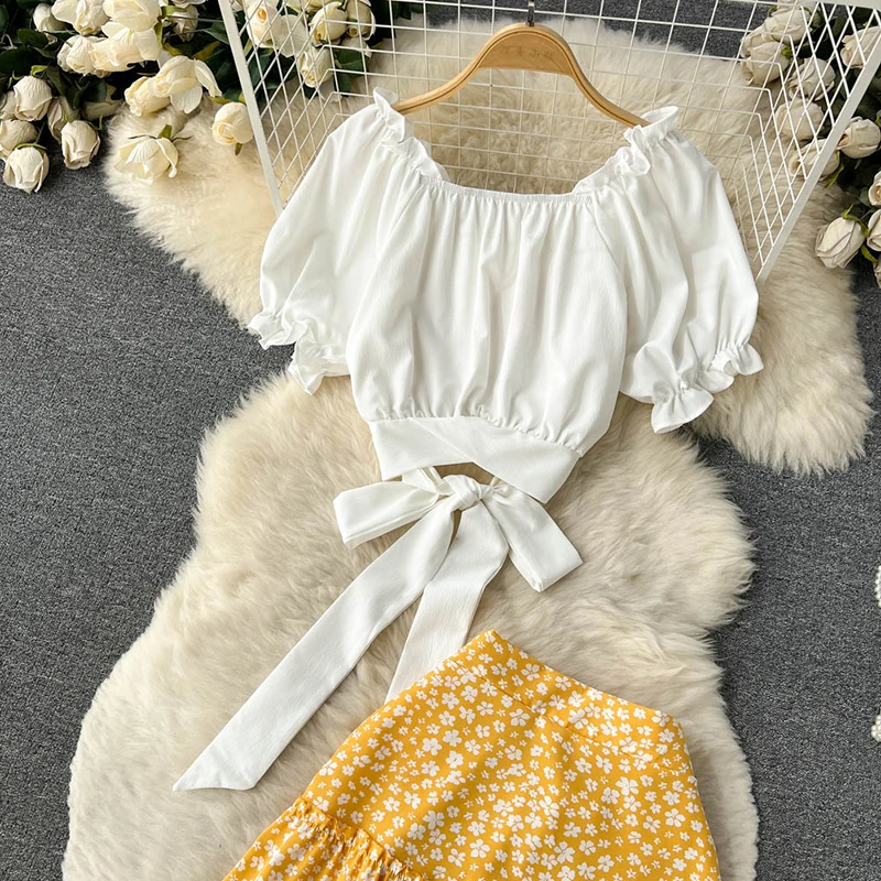 Factory Two Piece Skirts Sets for Women Chiffon Short Sleeve Blusas And Floral Printed High Waist Midi Skirt Matching Set Tops