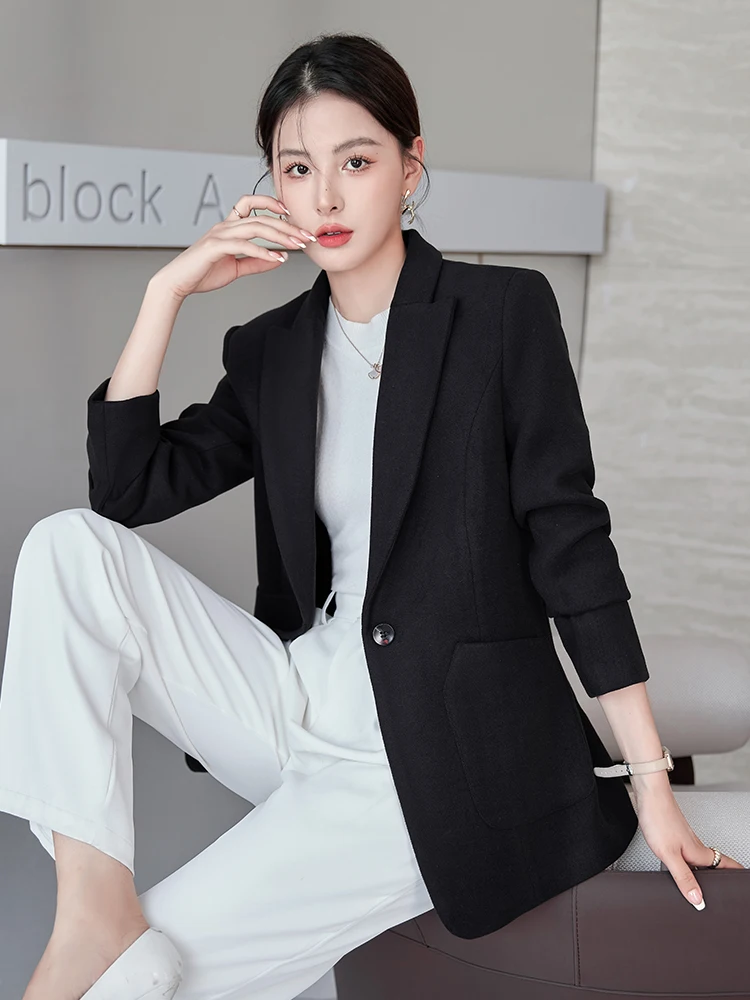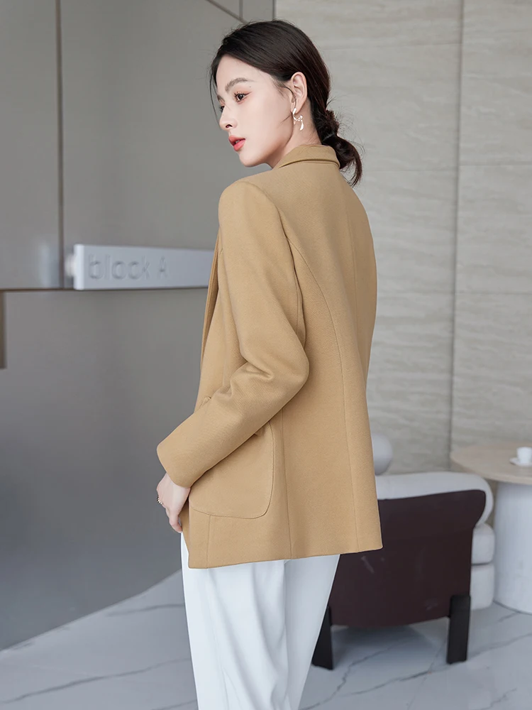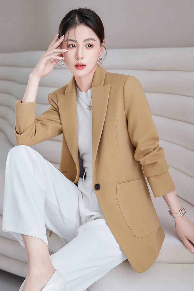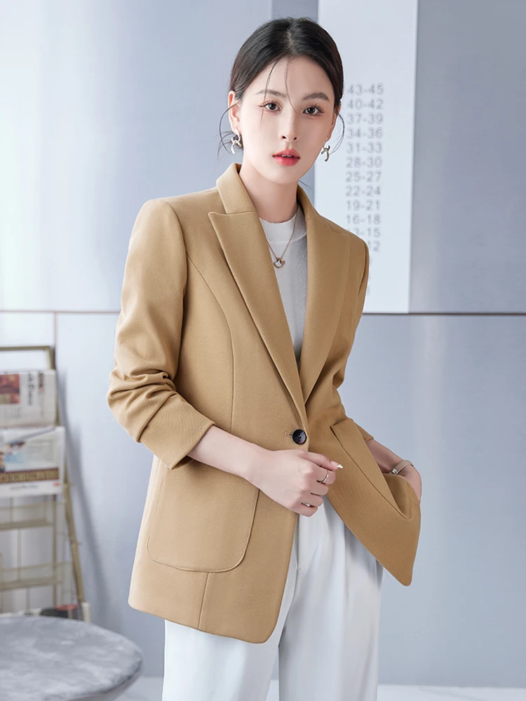 Factory Wholesale High-quality Casual Khaki Blazer with Big Pocket for Women Fashion Elegant Outwear Formal Jacket Women's Coats