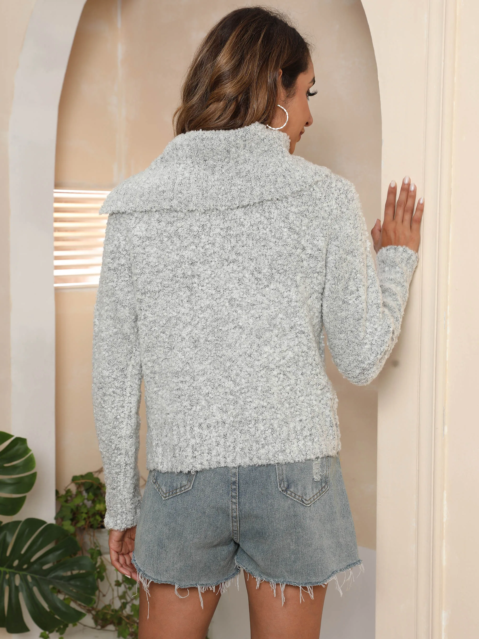 Factory Women Winter Solid Color Long Sleeve Turn Down Collar Thick Sweater Pullover