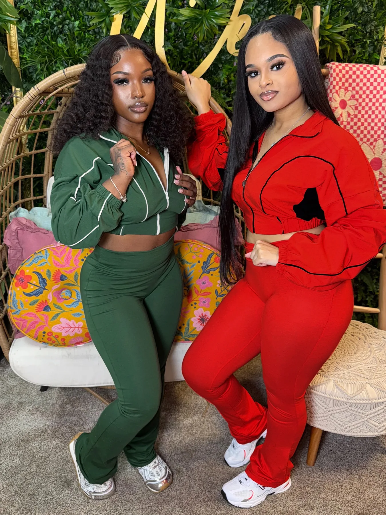 FAGADOER Casual Stripe Patchwork 2 Pieces Set for Woman Zip Long Sleeves Ruched Crop Top + Flare Pants Tracksuit Female Jogger