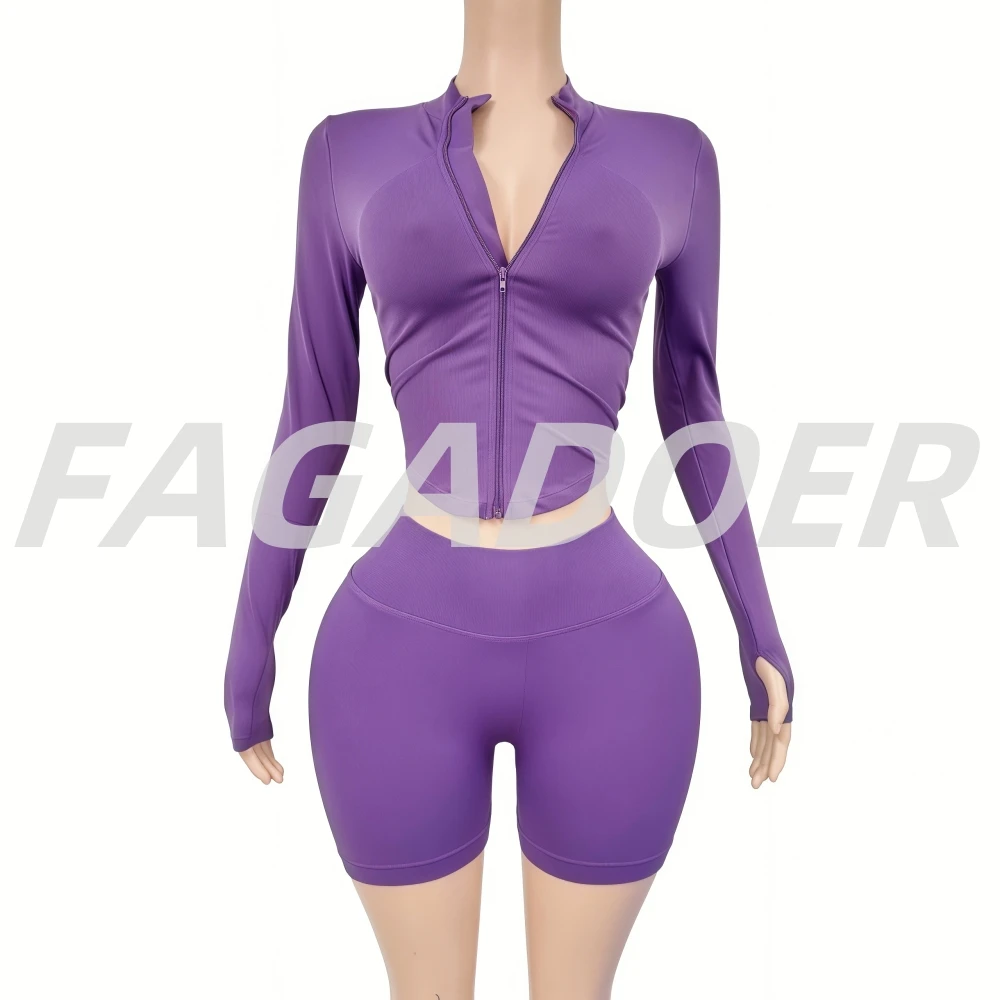 FAGADOER Fashion Sports Two Piece Outfits Woman Long Sleeve Zipper Jacket and High Waist Leggings Jogger Female Streetwear New