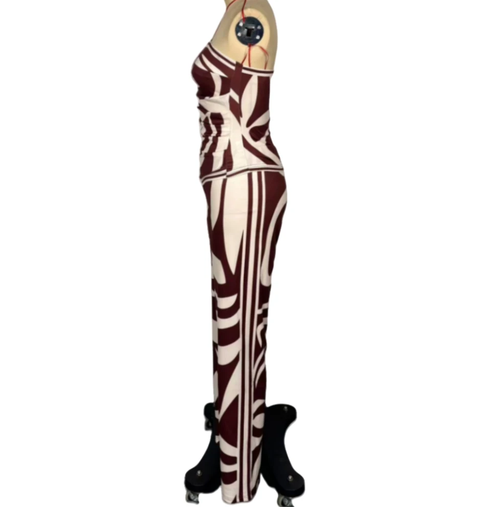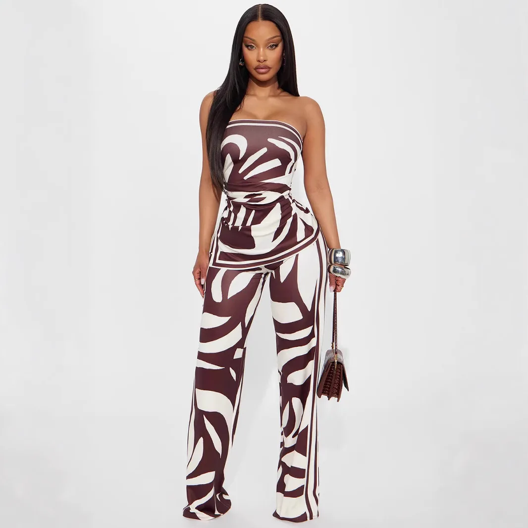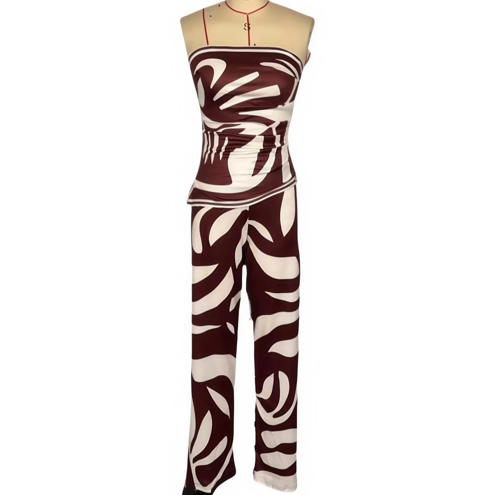 FAGADOER Fashion Stripe Print 2 Pieces Set for Woman Sleeveless Backless Top + Wide Leg Pant Outfits Matching Female Streetwear