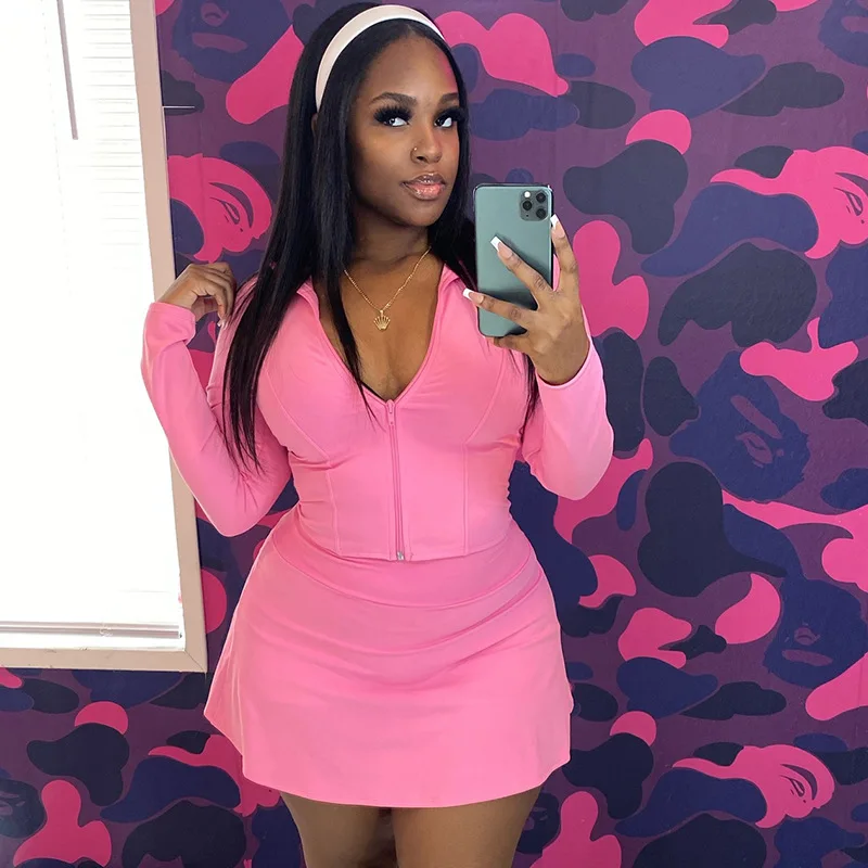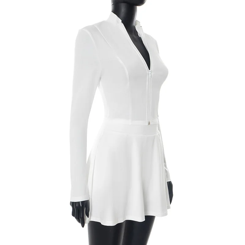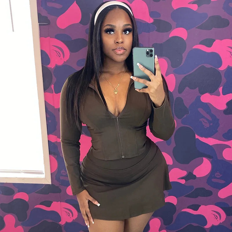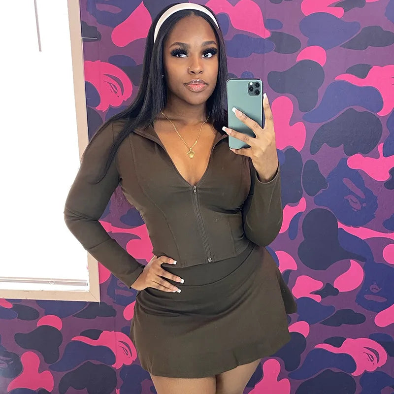 FAGADOER Sexy Sporty 2 Pieces Set for Woman Zipper Long Sleeve Jacket Tops + Pleated Skirts Tracksuits Female Streetwear 2025