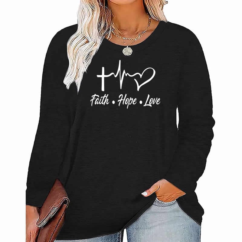 faith hope Love pattern Plus Size Women's Top Autumn X-Large-5X-Large woman clothes y2k t shirt oversized long sleeve tshirt