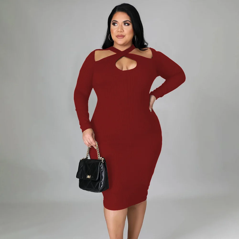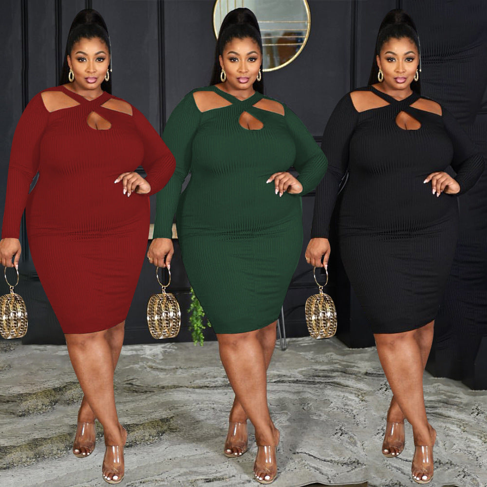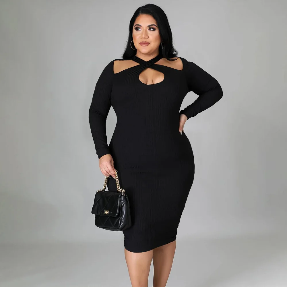 Fall 2022 Casual Sexy Elegant Knit Plus Big Fat Size 5x Women Casual Sweater Dress
