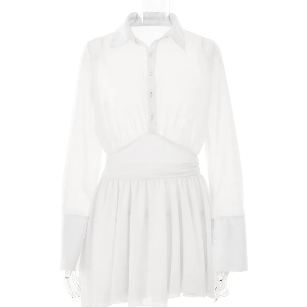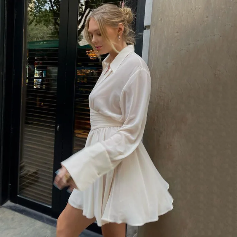 fall 2023 elegance corset white shirt dress ladies slim fit long sleeve mini party dress fashionable
