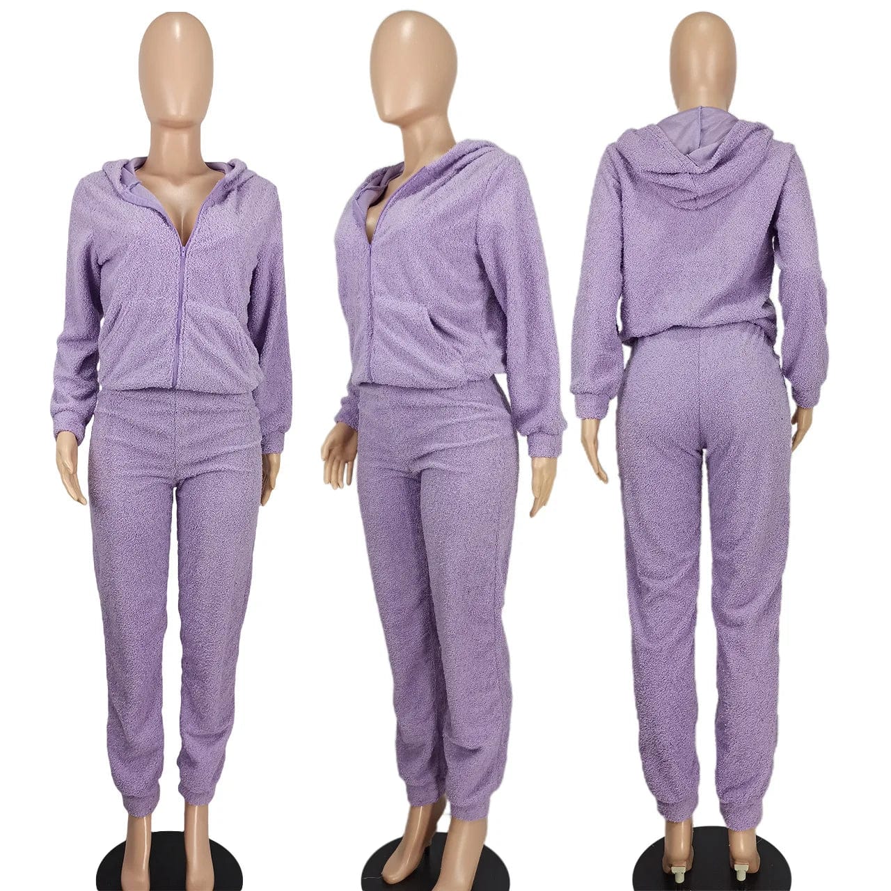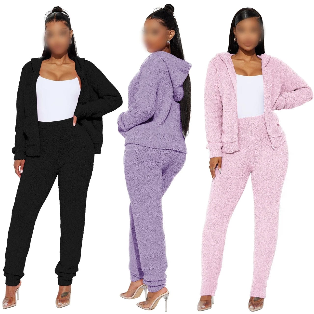 Fall 2024 Women Clothes Hoodie Lounge Wear Long Sleeve Boutique Plush Two Piece Set