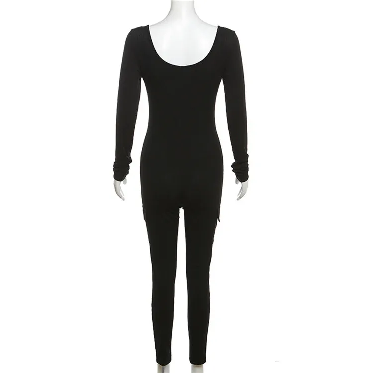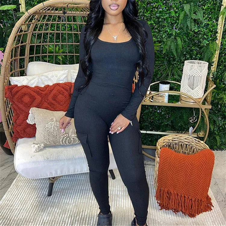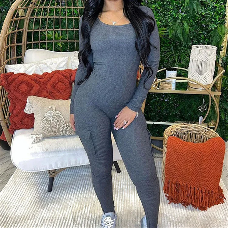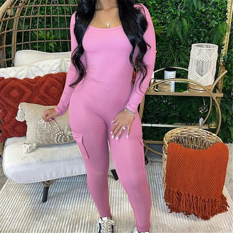 Fall Ribbed Jumpsuit Women Pants 2023 One Piece Casual Outfits O Neck Long Sleeve Bodycon Jumpsuit