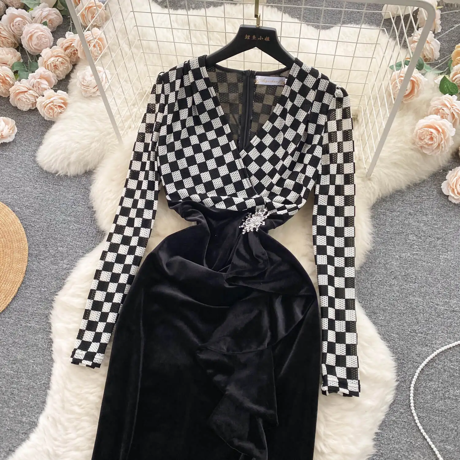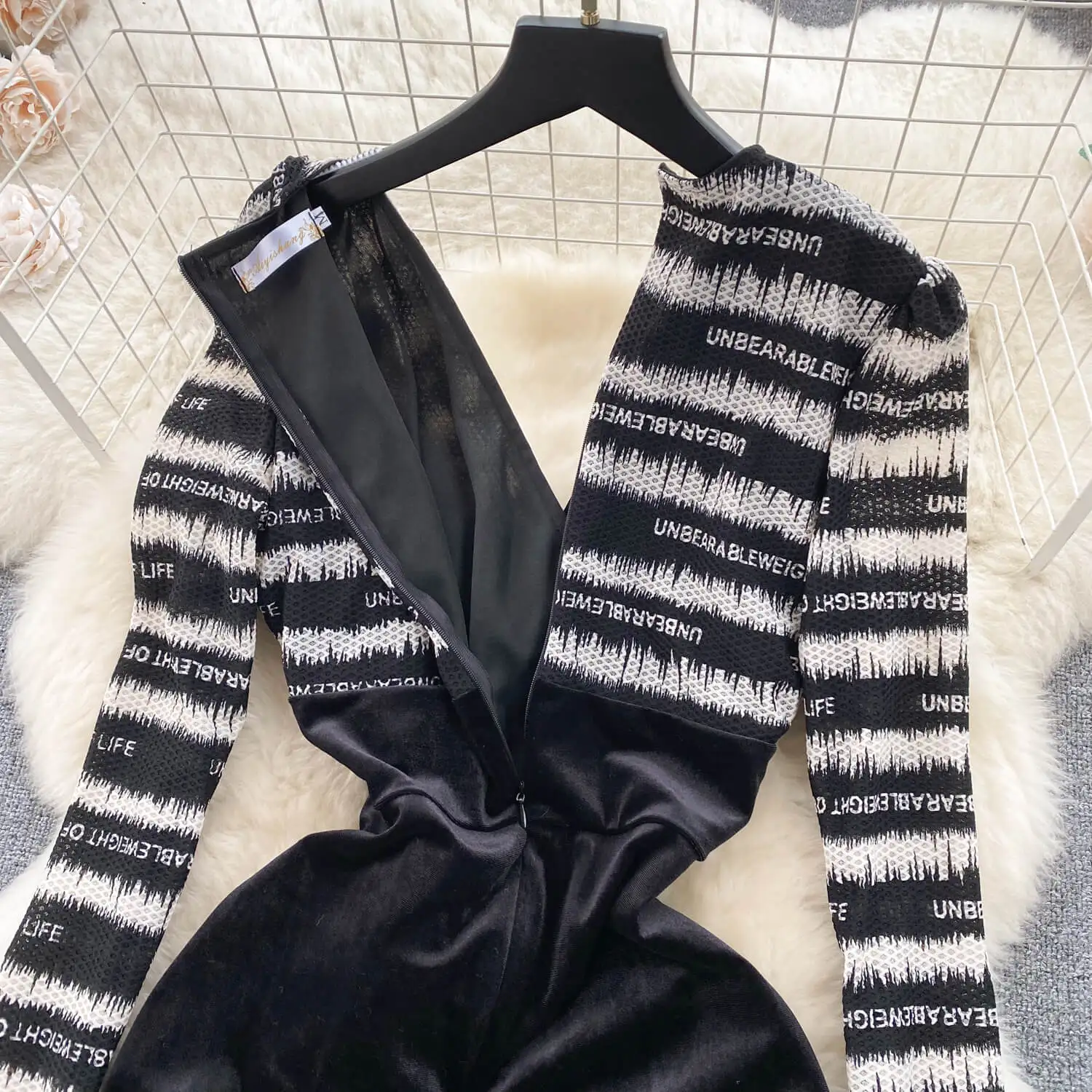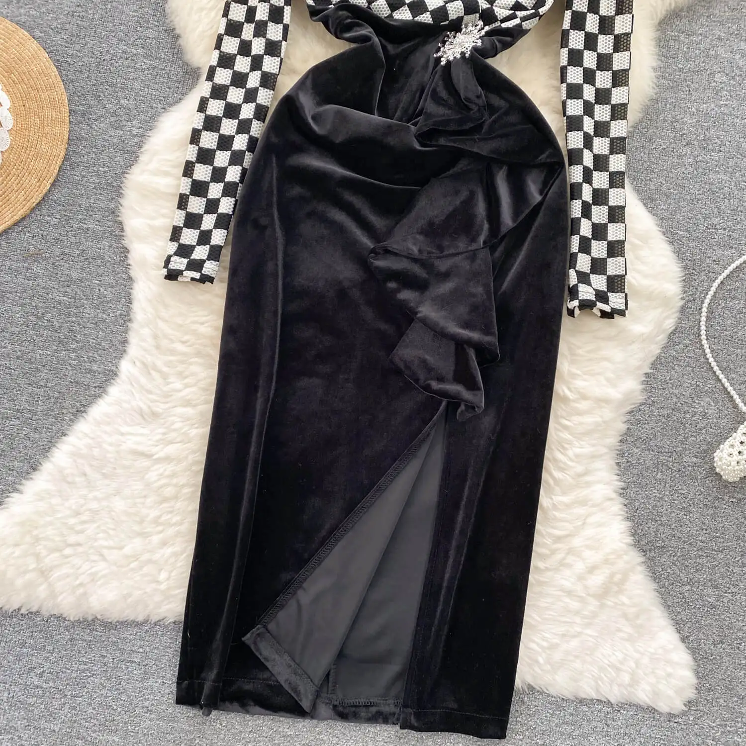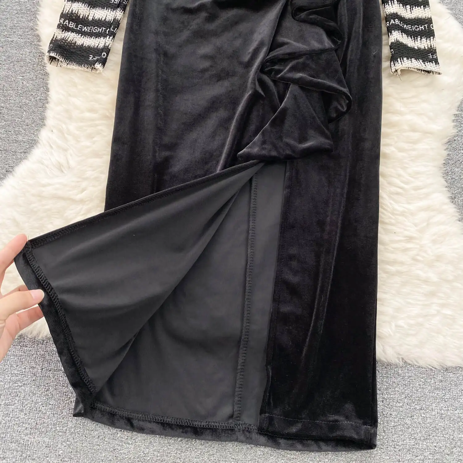 Fall Romantic Slit Sheath Midi Dress For Women Empire Patchwork Mesh Dresses Ladies Elegant Dresses Clothes Women
