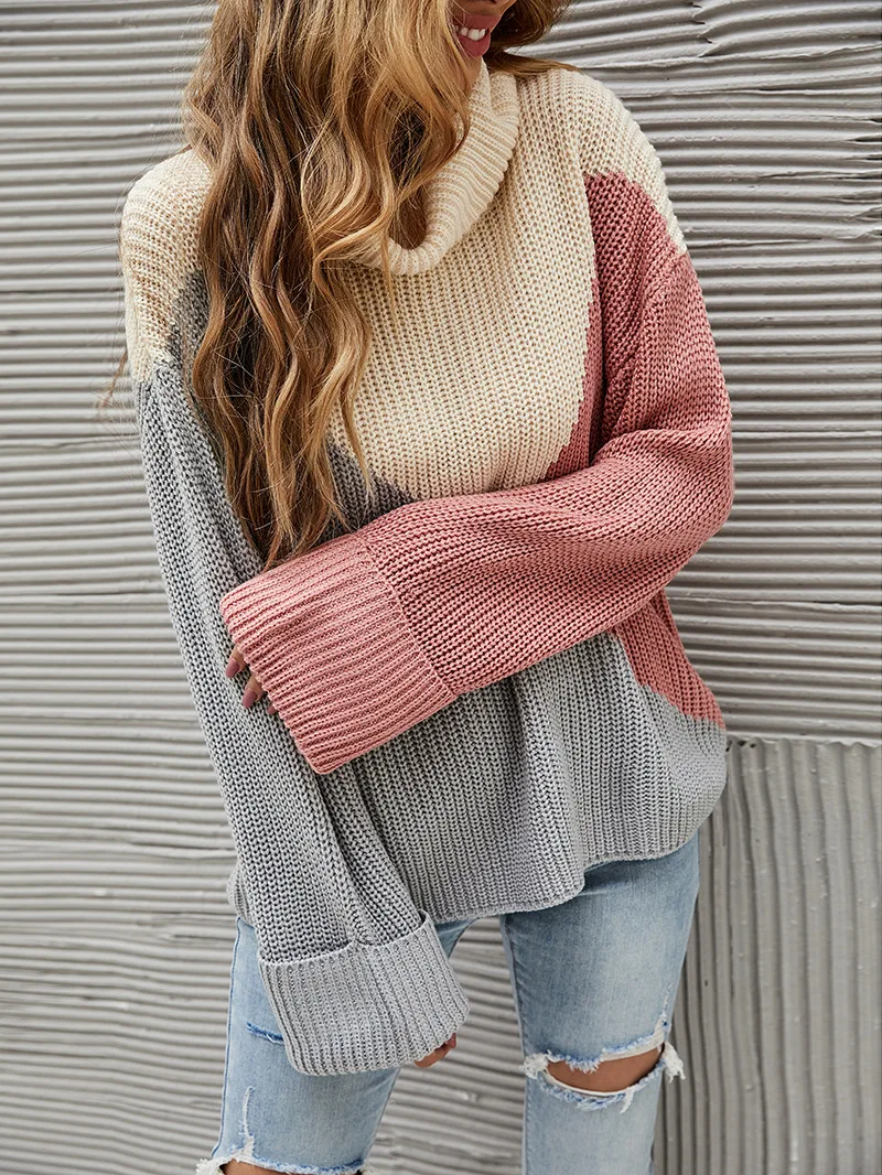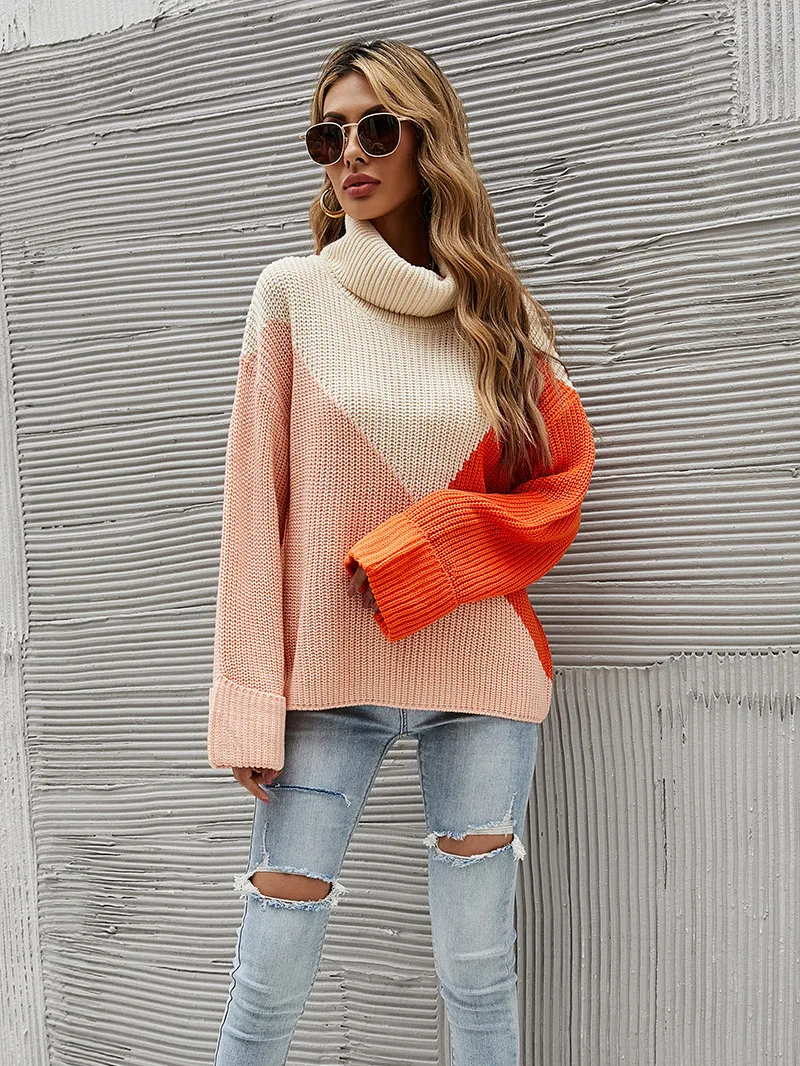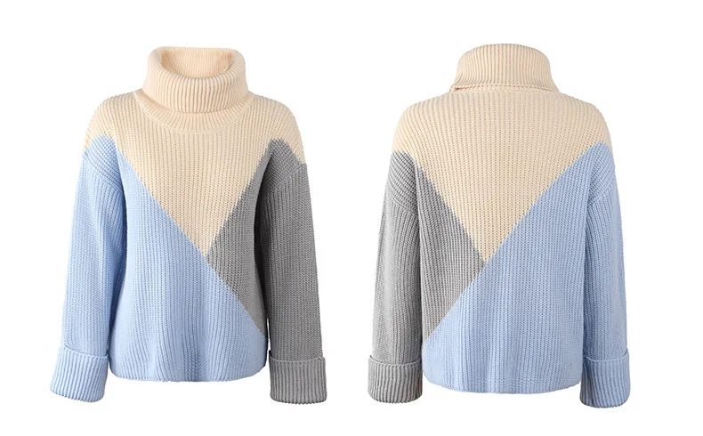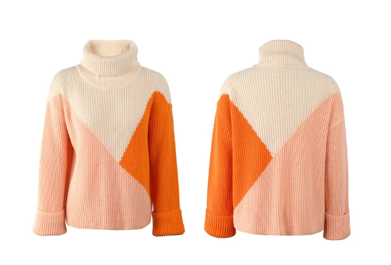 Fall/Winter contrast knitwear loose oversize lapel women casual pullover sweater