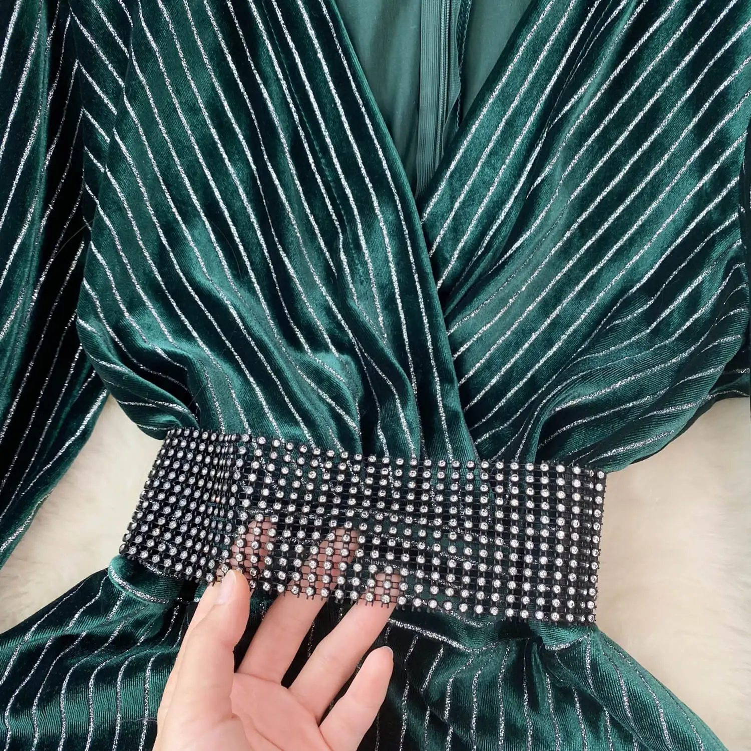 Fall Winter Fashion High-End Elegant Waist Drop Sequin Velvet Dress