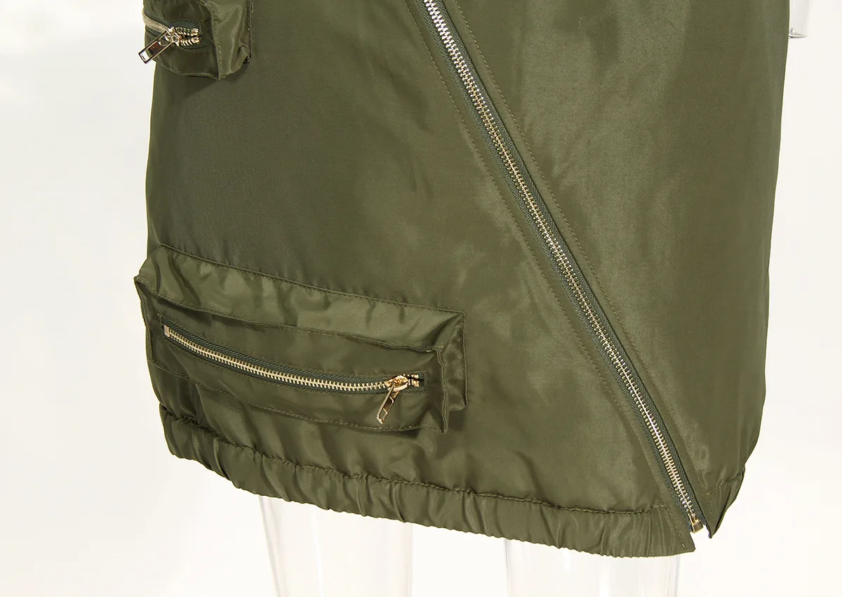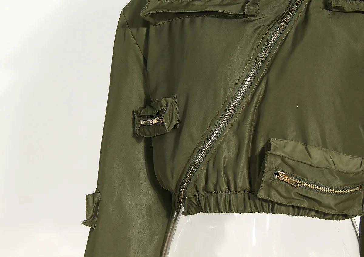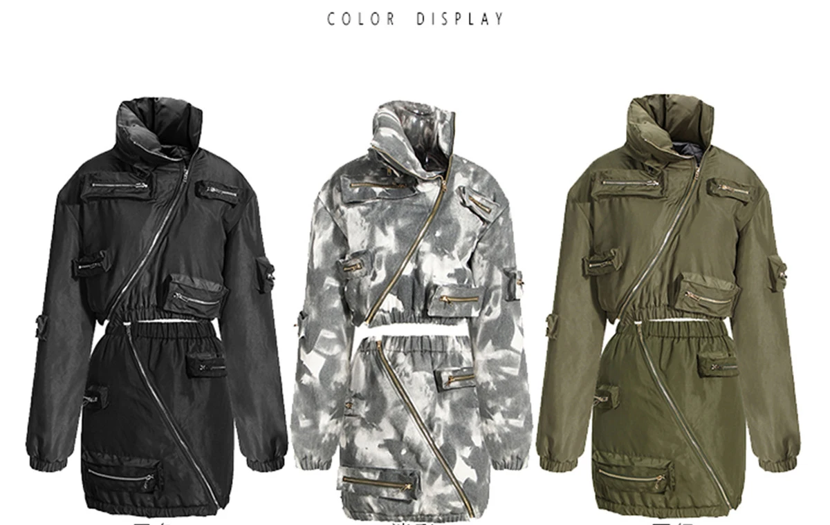 Fall Winter Ladies Zipper Crop Puffer Coat Jacket With Mini Cargo Skirts Sets Women Sexy 2 Piece Outfit