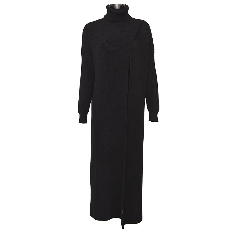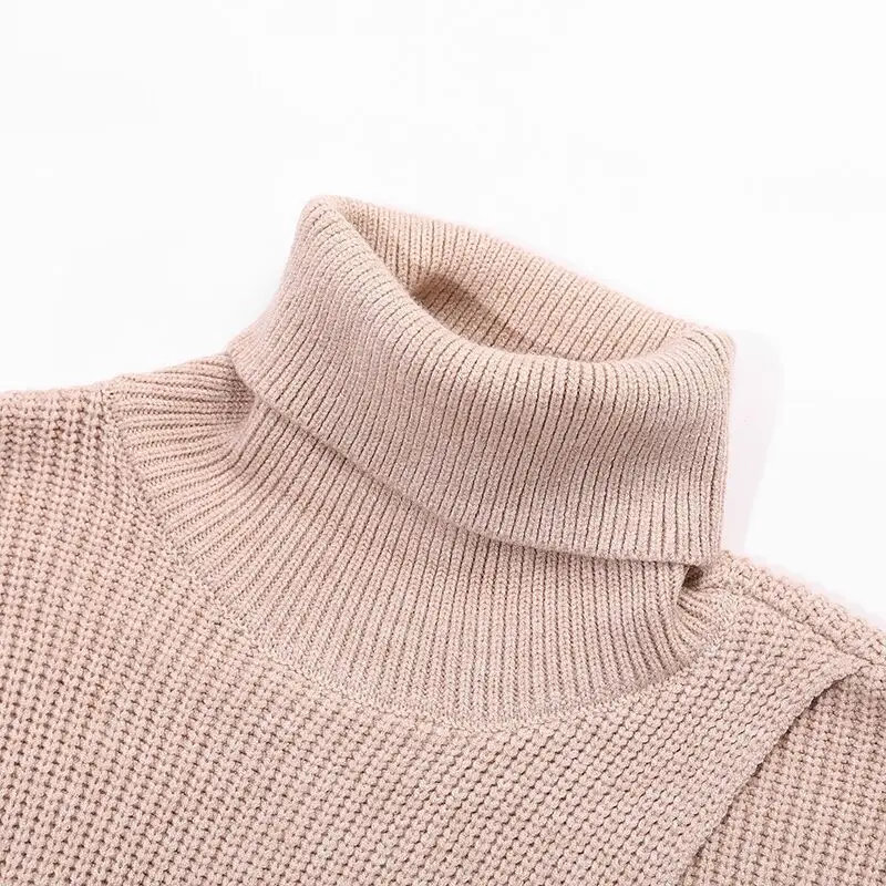 Fall Winter Trendy Fashionable Ladies Casual Turtleneck Pullover Woman Tops Long Split Knit Womens Sweaters