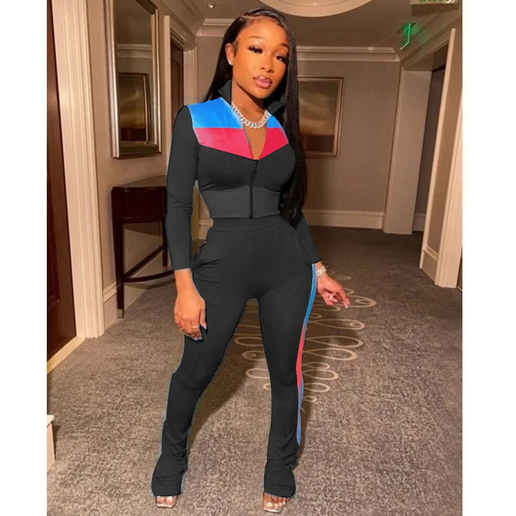 Fall Winter Women Track Suits Two Piece Pants Sets Pockets Sweatpants Full Zip Up Sweatshirt 2 Pcs Jogger Outfits