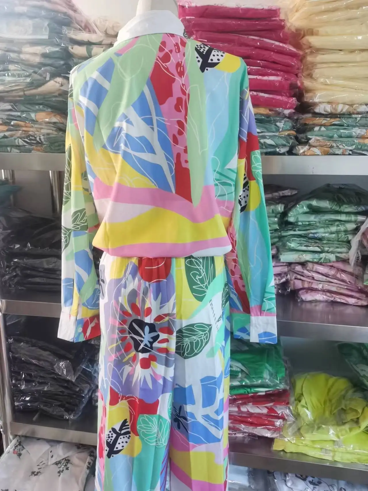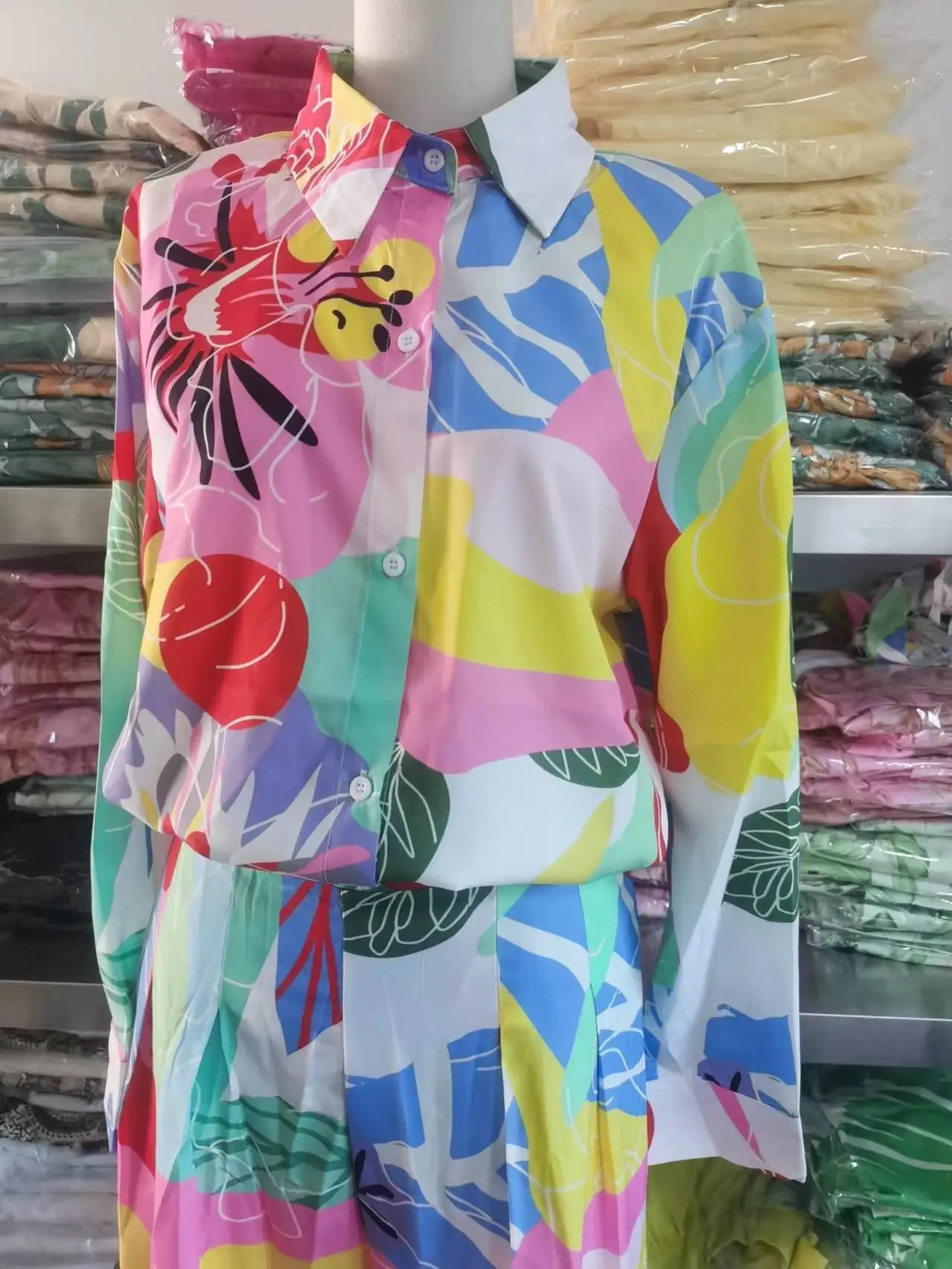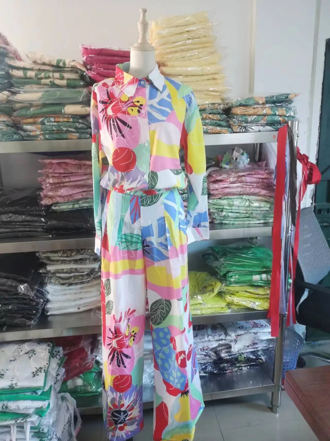 fall womens clothing match casual Temperament commuter long sleeve loose shirt high waisted wide leg pants two piece ladies sets