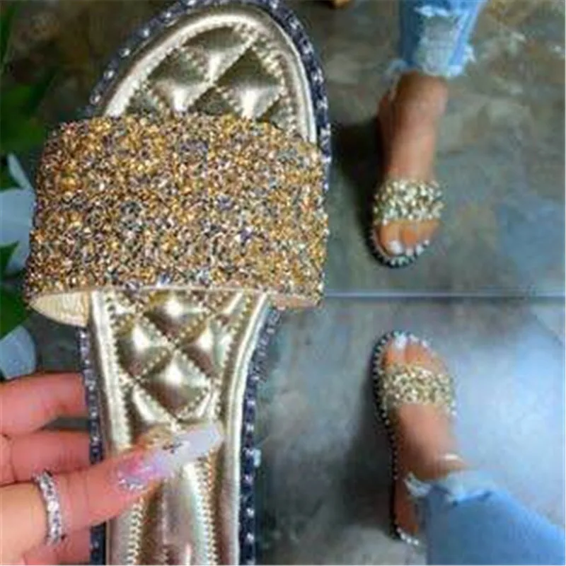 Famous Brand ladies luxury female fashion flat slippers rhinestone slippers for women designer house slippers