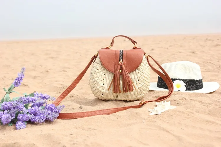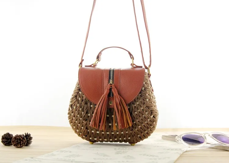 Famous Designer Ladies Woven Knitting Messenger Crossbody Bags Summer Bohemian Tassel Straw Beach Shoulder Bag