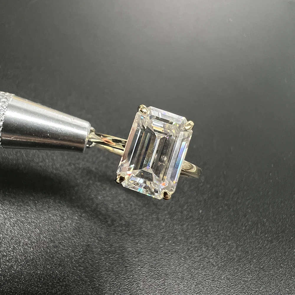 Fancy Jewelry Wedding Engagement 10k Gold Emerald Cut 3 Carat VVS D Moissanite Emerald Cut Moissanite Ring