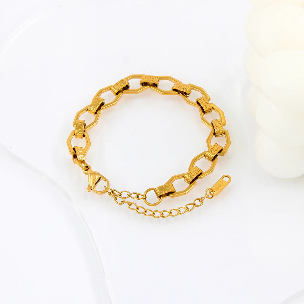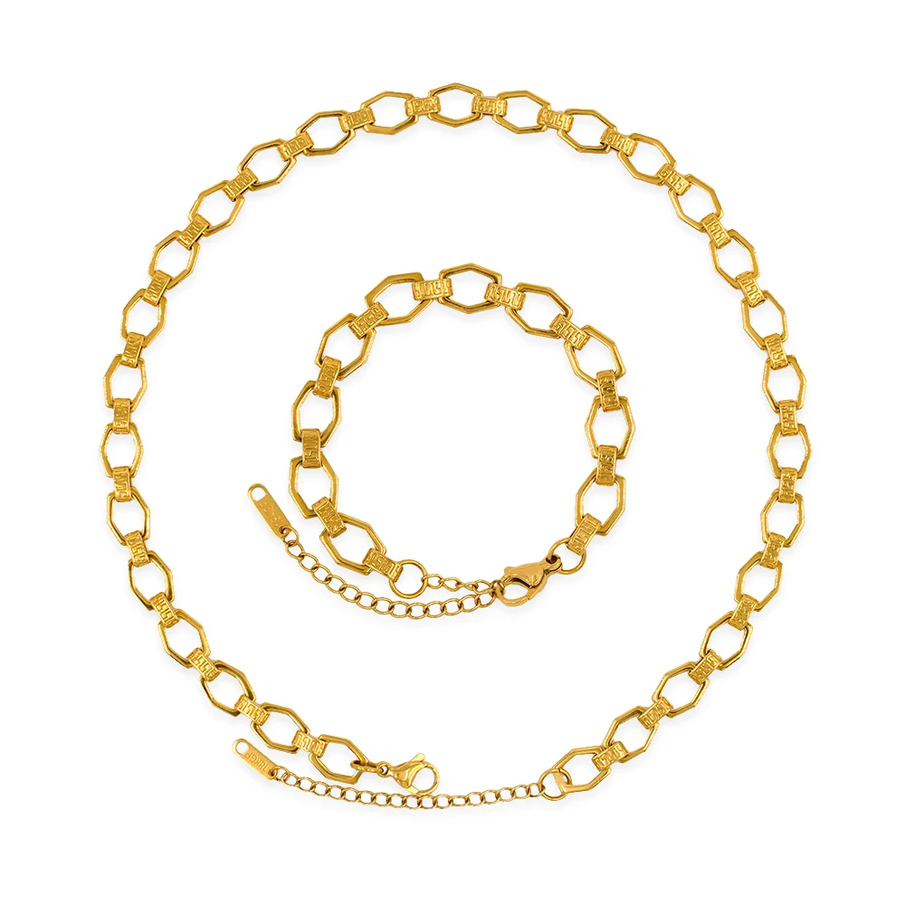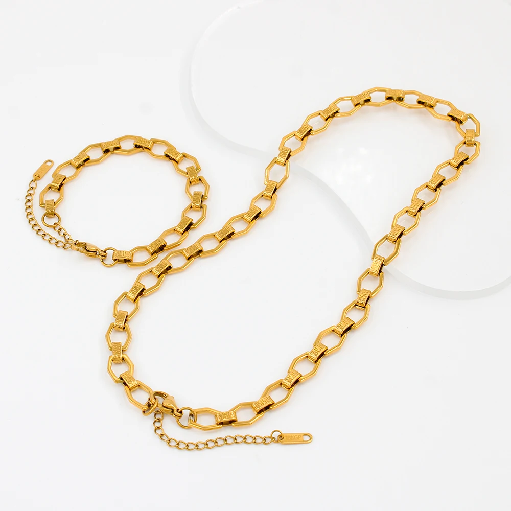 FANJIN High Quality 18K Gold Plated Stainless Steel Jewelry Bracelets chains popular women and men necklace